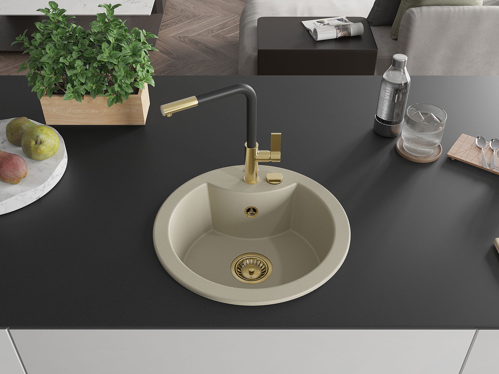 Il lavello è realizzato in granito di alta qualità. Rappresenta un complemento elegante e, soprattutto, pratico per ogni cucina, indipendentemente dal suo stile. L'alta qualità e la durata del granito garantiscono un utilizzo che dura per molti anni.