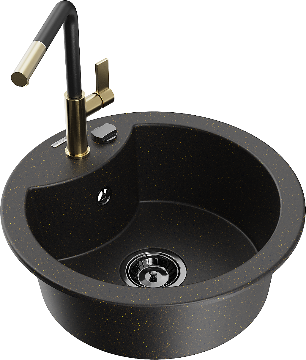 Mexen Diego lavello in granito a 1 vasca con miscelatore da cucina Flora, nero/oro metallico - 6512-75-670401-57-B