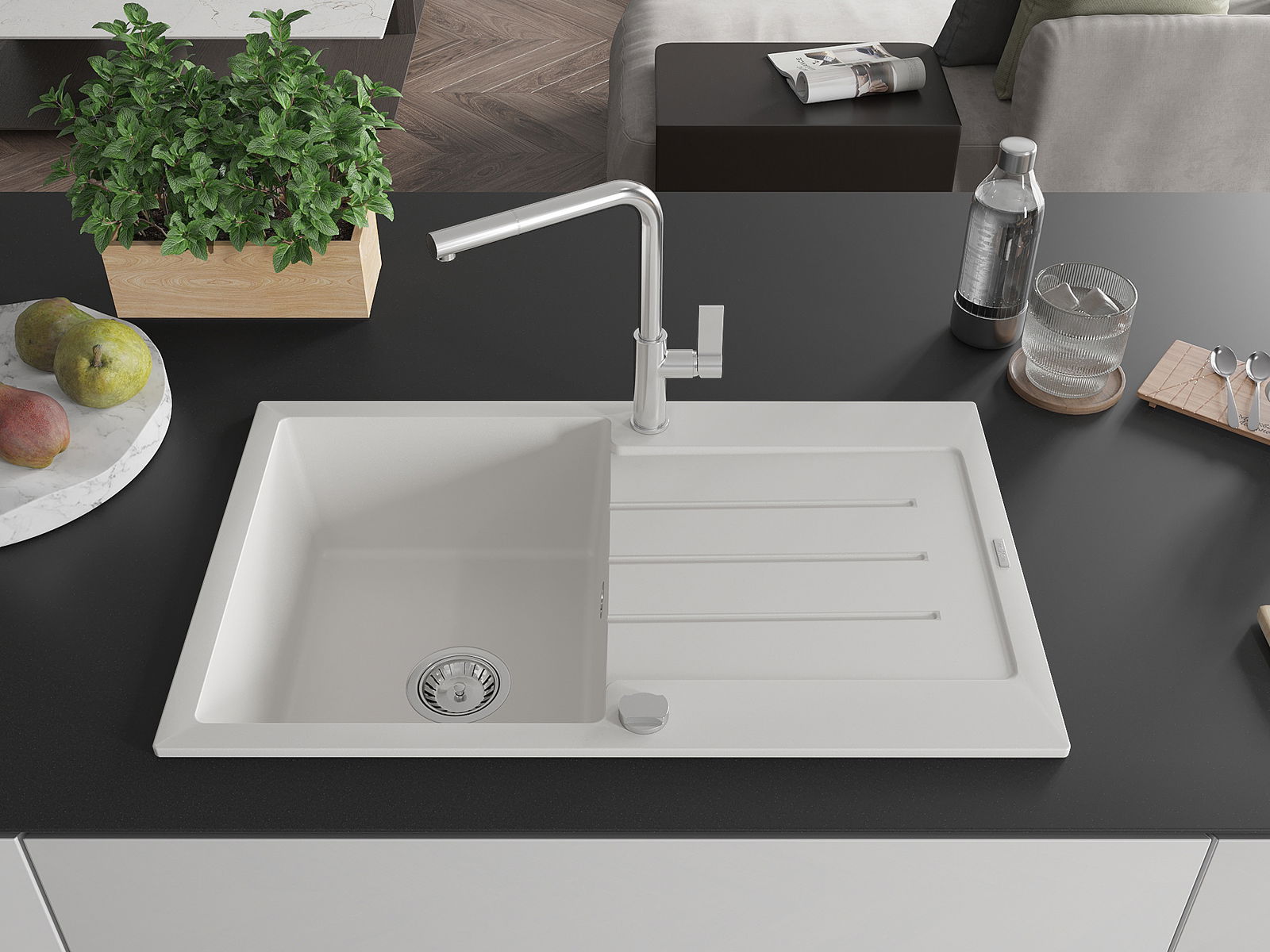 La scelta di un lavello con sgocciolatoio è una soluzione pratica che consente di riporre piatti, verdure e frutta lavati. Lo sgocciolatoio facilita la cucina quotidiana e aiuta a mantenere l'ordine in cucina.