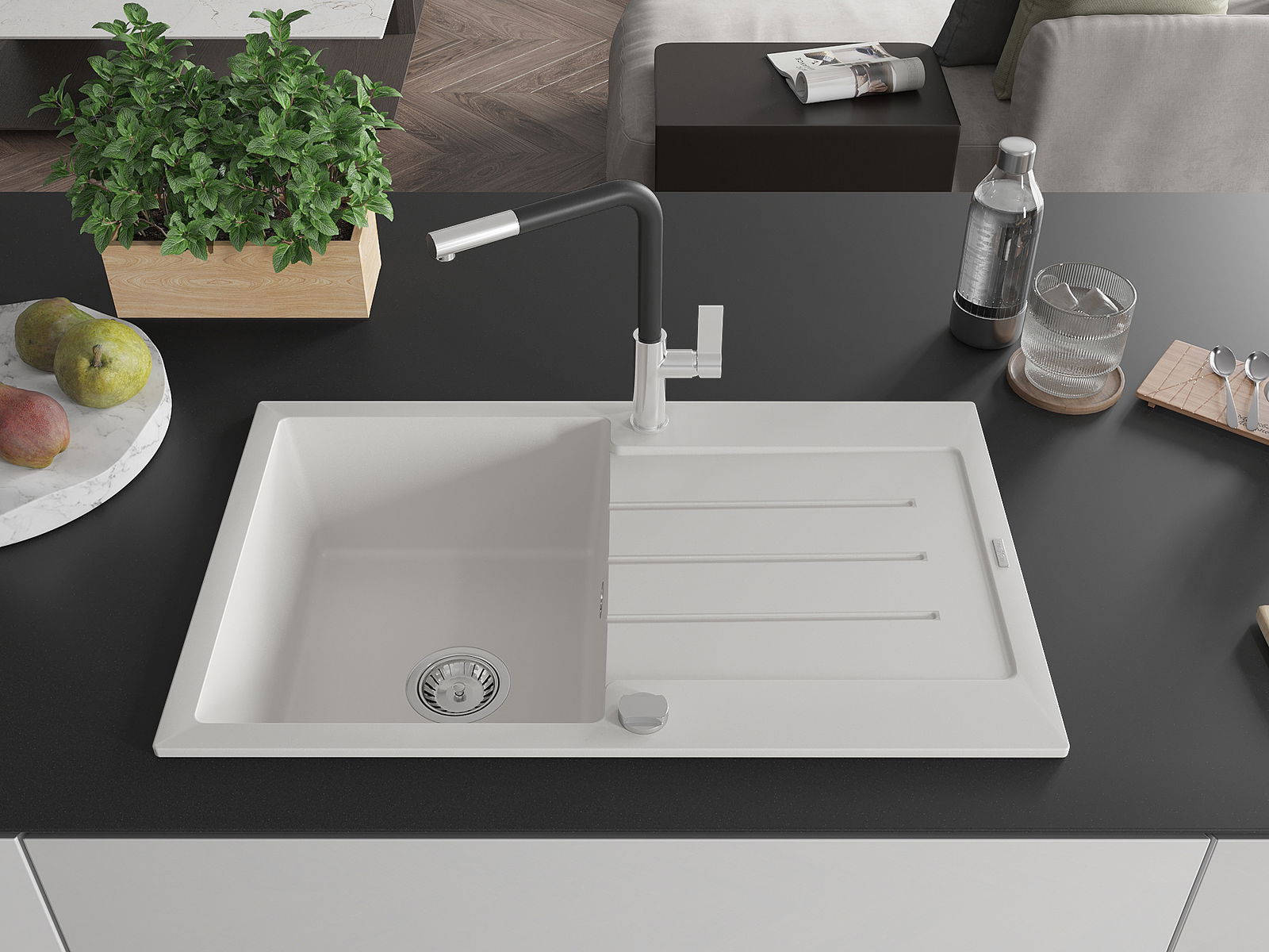 La scelta di un lavello con sgocciolatoio è una soluzione pratica che consente di riporre piatti, verdure e frutta lavati. Lo sgocciolatoio facilita la cucina quotidiana e aiuta a mantenere l'ordine in cucina.