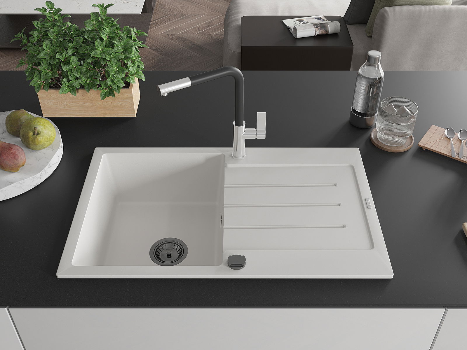 La scelta di un lavello con sgocciolatoio è una soluzione pratica che consente di riporre piatti, verdure e frutta lavati. Lo sgocciolatoio facilita la cucina quotidiana e aiuta a mantenere l'ordine in cucina.
