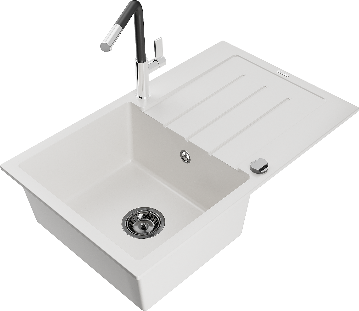 Mexen Bruno lavello in granito 1-vasca con scolapiatti e rubinetto da cucina Flora, bianco - 6513-20-670401-07-B