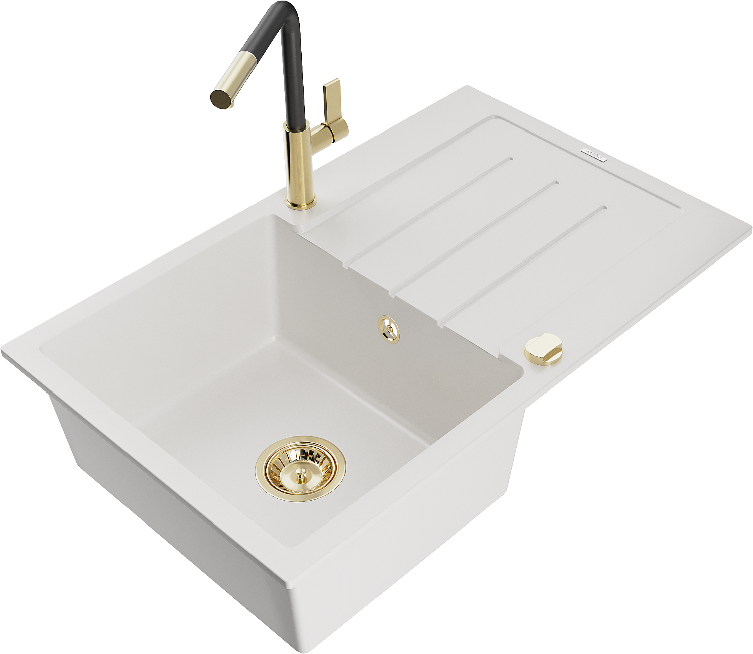 Mexen Bruno lavello in granito a 1 vasca con scolapiatti e rubinetto da cucina Flora, bianco - 6513-20-670401-57-G