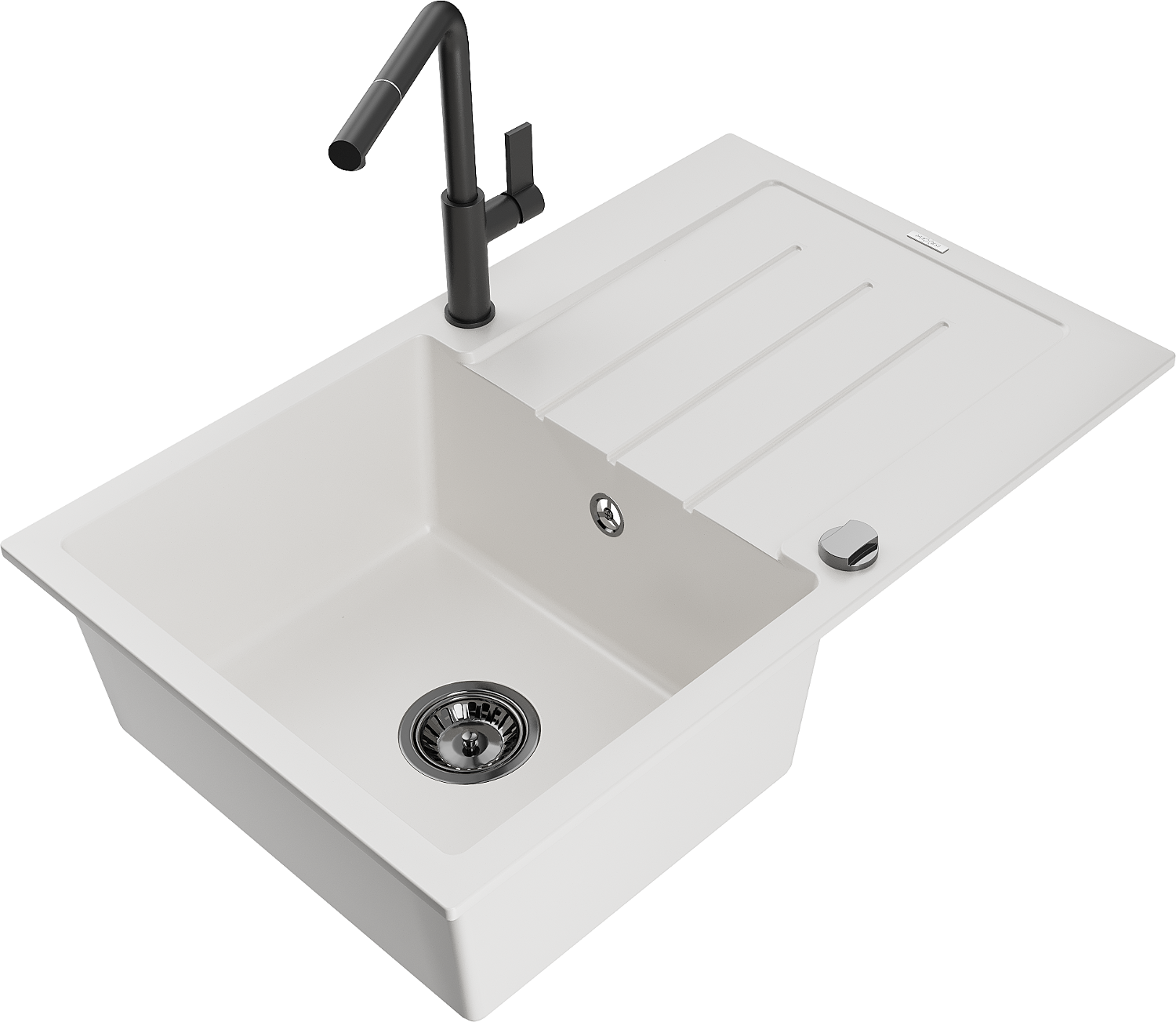 Mexen Bruno lavello in granito 1-vasca con gocciolatoio e miscelatore da cucina Flora, bianco - 6513-20-670401-70-B
