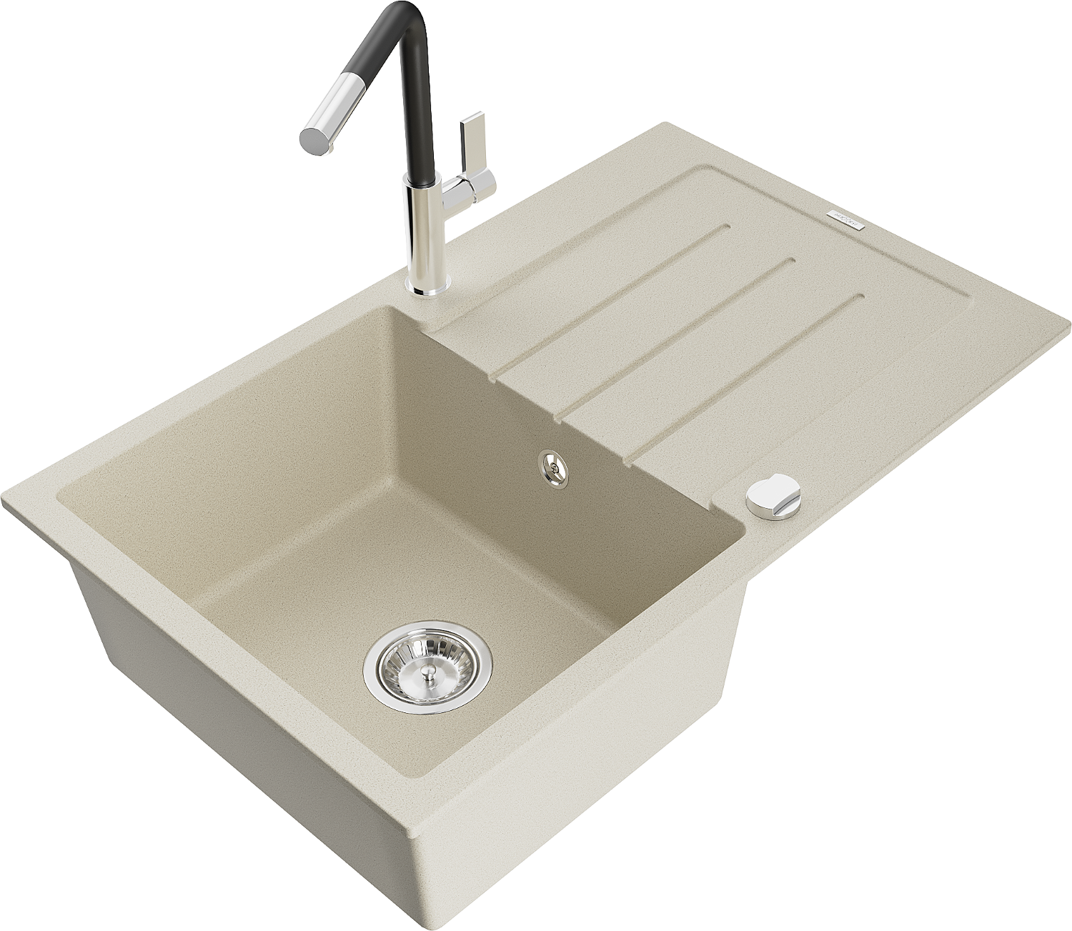 Mexen Bruno lavello da cucina in granito con 1 vasca e scolapiatti e rubinetto Flora, beige - 6513-69-670401-07