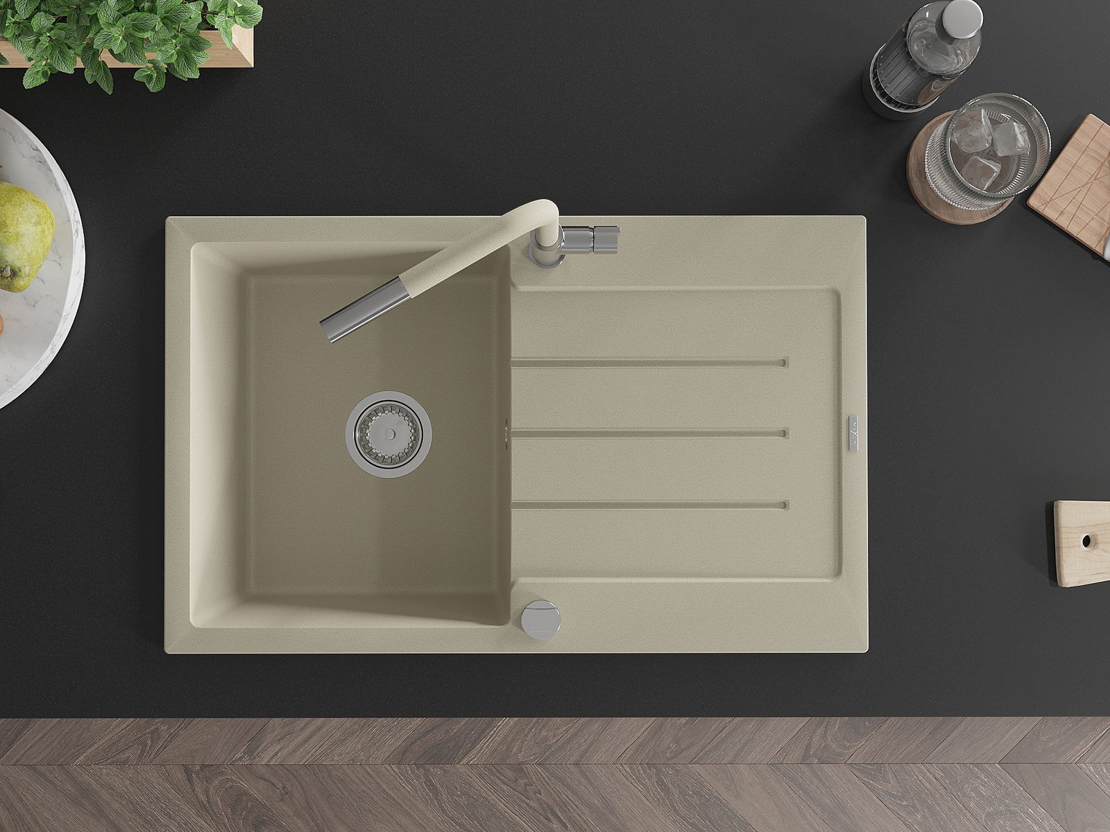 Il lavello è realizzato in granito di alta qualità. Rappresenta un complemento elegante e, soprattutto, pratico per ogni cucina, indipendentemente dal suo stile. L'alta qualità e la durata del granito garantiscono un utilizzo che dura per molti anni.