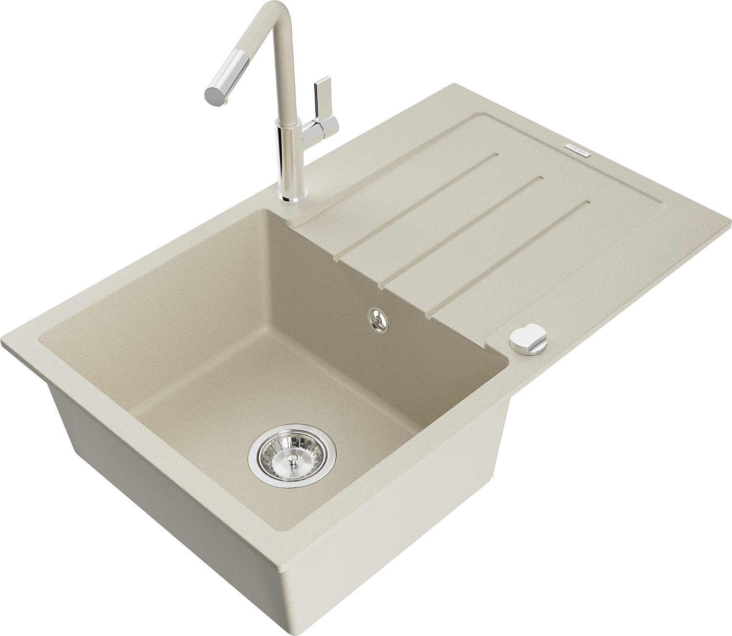 Mexen Bruno lavello in granito a 1 vasca con scolapiatti e rubinetto da cucina Flora, beige - 6513-69-670401-09