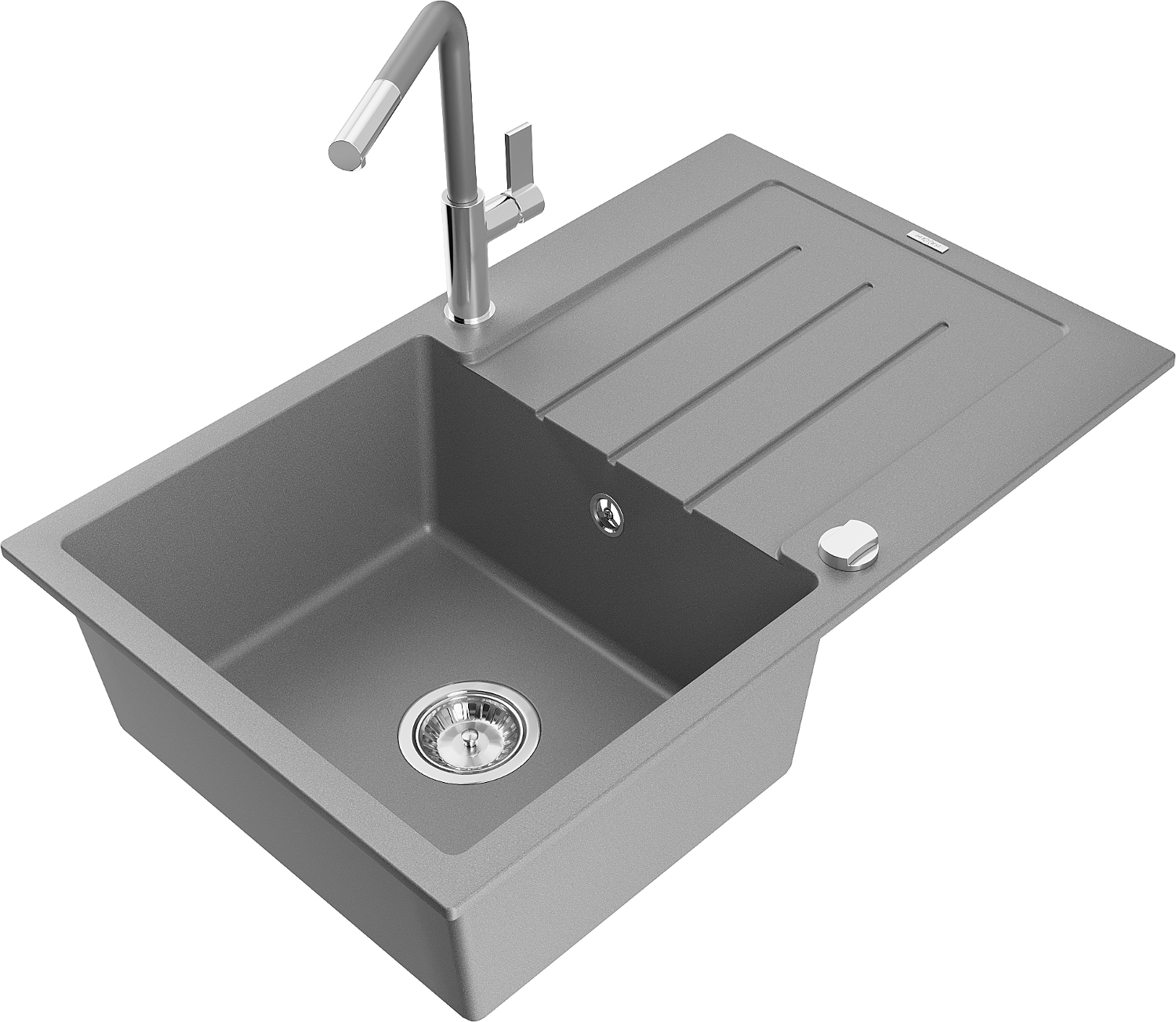 Mexen Bruno lavello in granito 1 vasca con sgocciolatoio e rubinetto da cucina Flora, grigio - 6513-71-670401-06