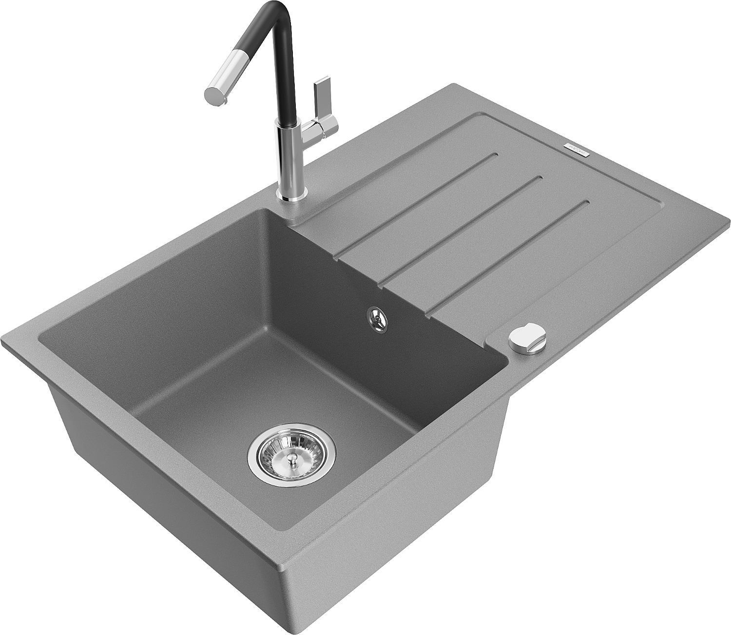 Mexen Bruno lavello in granito a 1 vasca con scolapiatti e rubinetto cucina Flora, grigio - 6513-71-670401-07