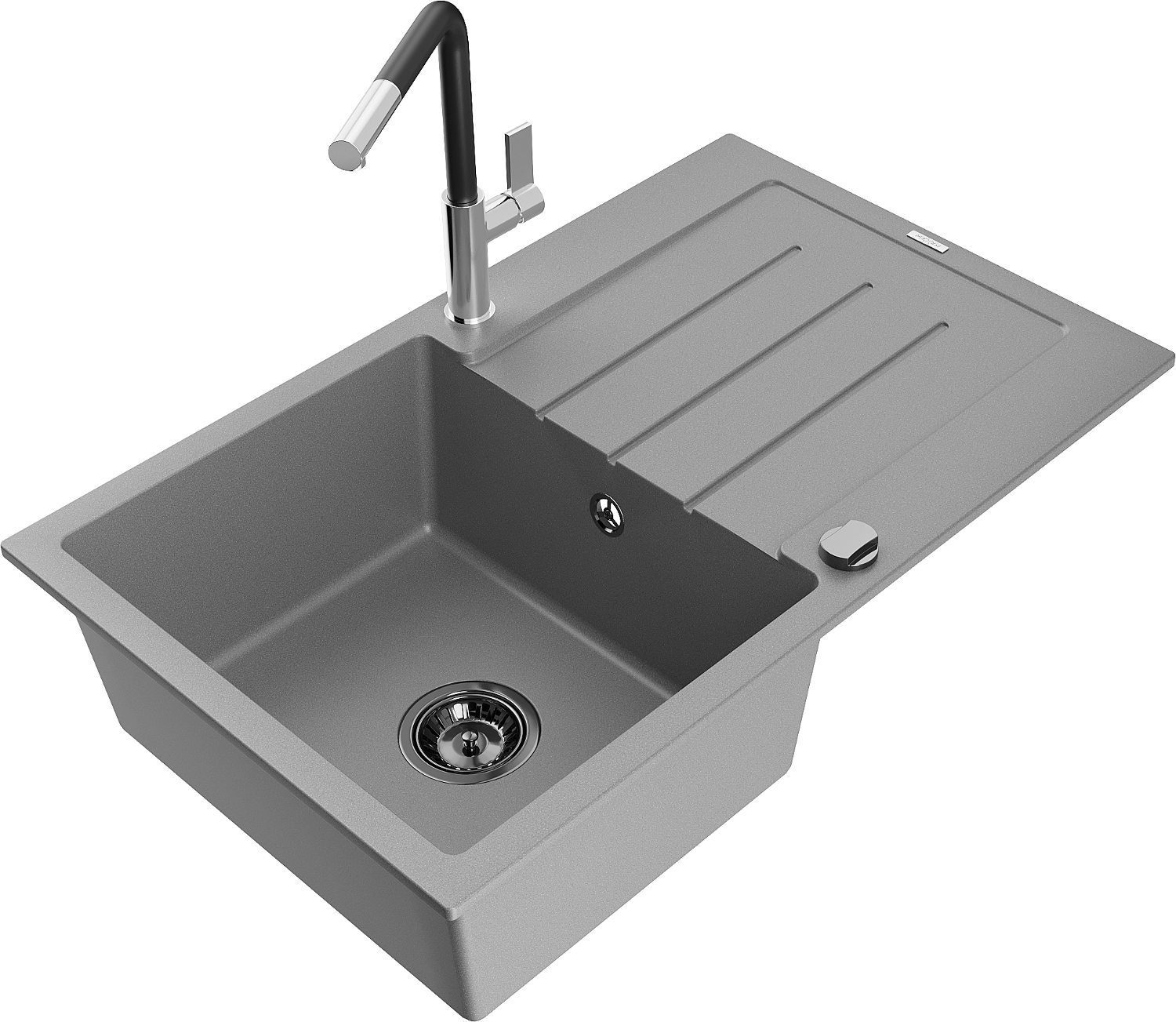Mexen Bruno lavello in granito con 1 vasca con gocciolatoio e rubinetto da cucina Flora, grigio - 6513-71-670401-07-B