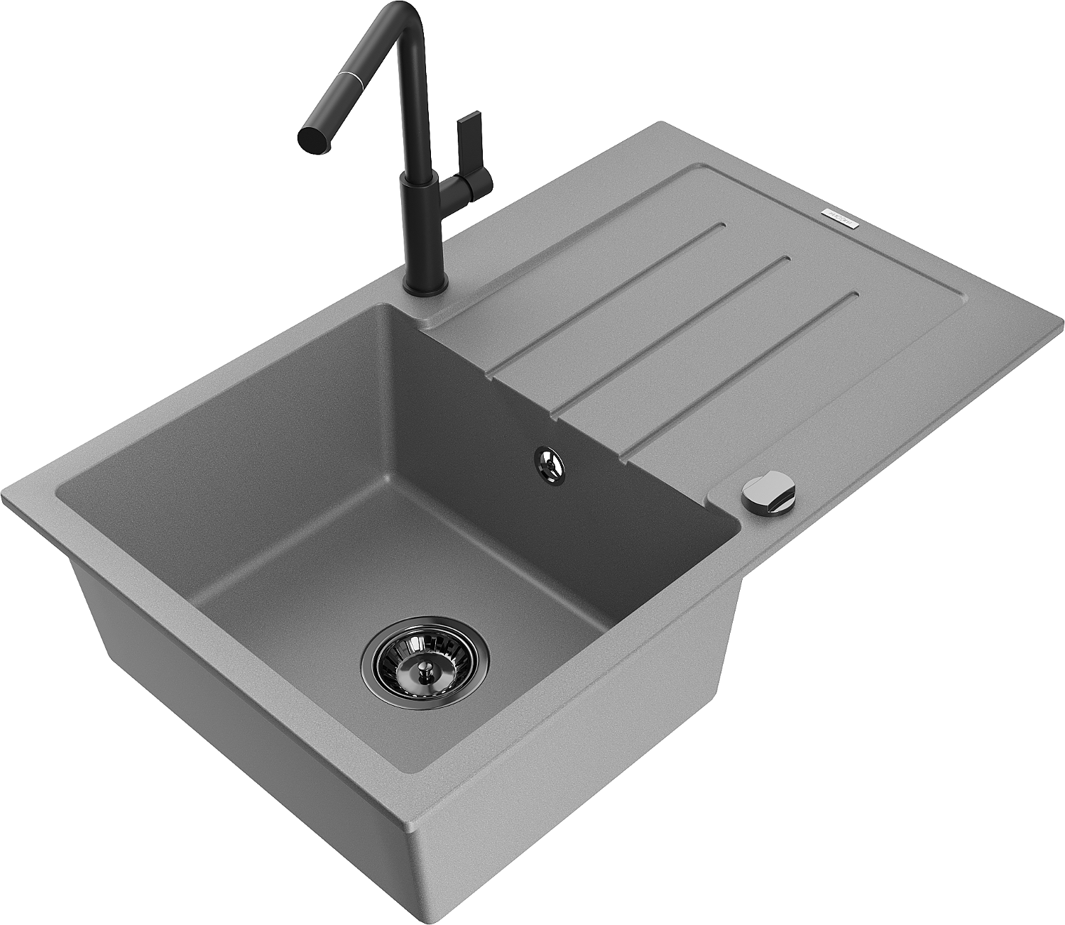 Mexen Bruno lavello da cucina in granito 1-vasca con scolapiatti e rubinetto cucina Flora, grigio - 6513-71-670401-70-B