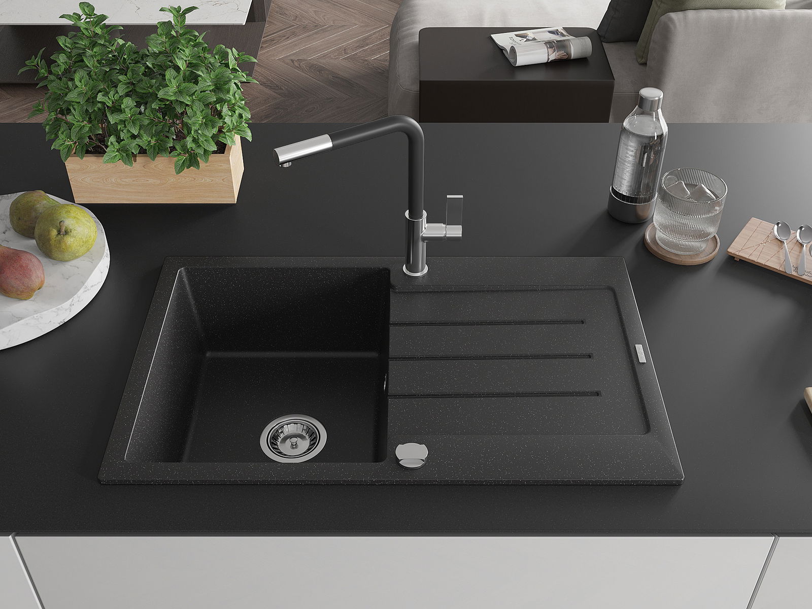 La scelta di un lavello con sgocciolatoio è una soluzione pratica che consente di riporre piatti, verdure e frutta lavati. Lo sgocciolatoio facilita la cucina quotidiana e aiuta a mantenere l'ordine in cucina.