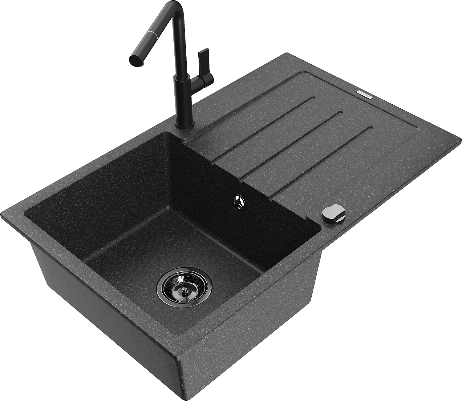 Mexen Bruno lavello in granito a 1 vasca con sgocciolatoio e rubinetto da cucina Flora, nero maculato - 6513-76-670401-70-B