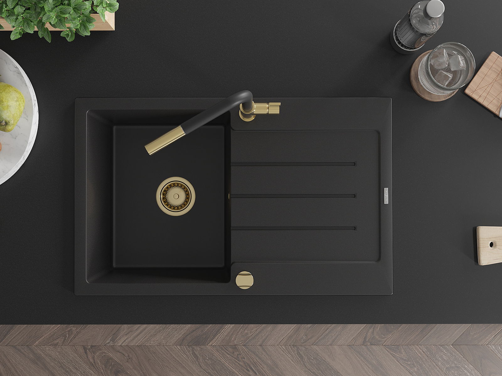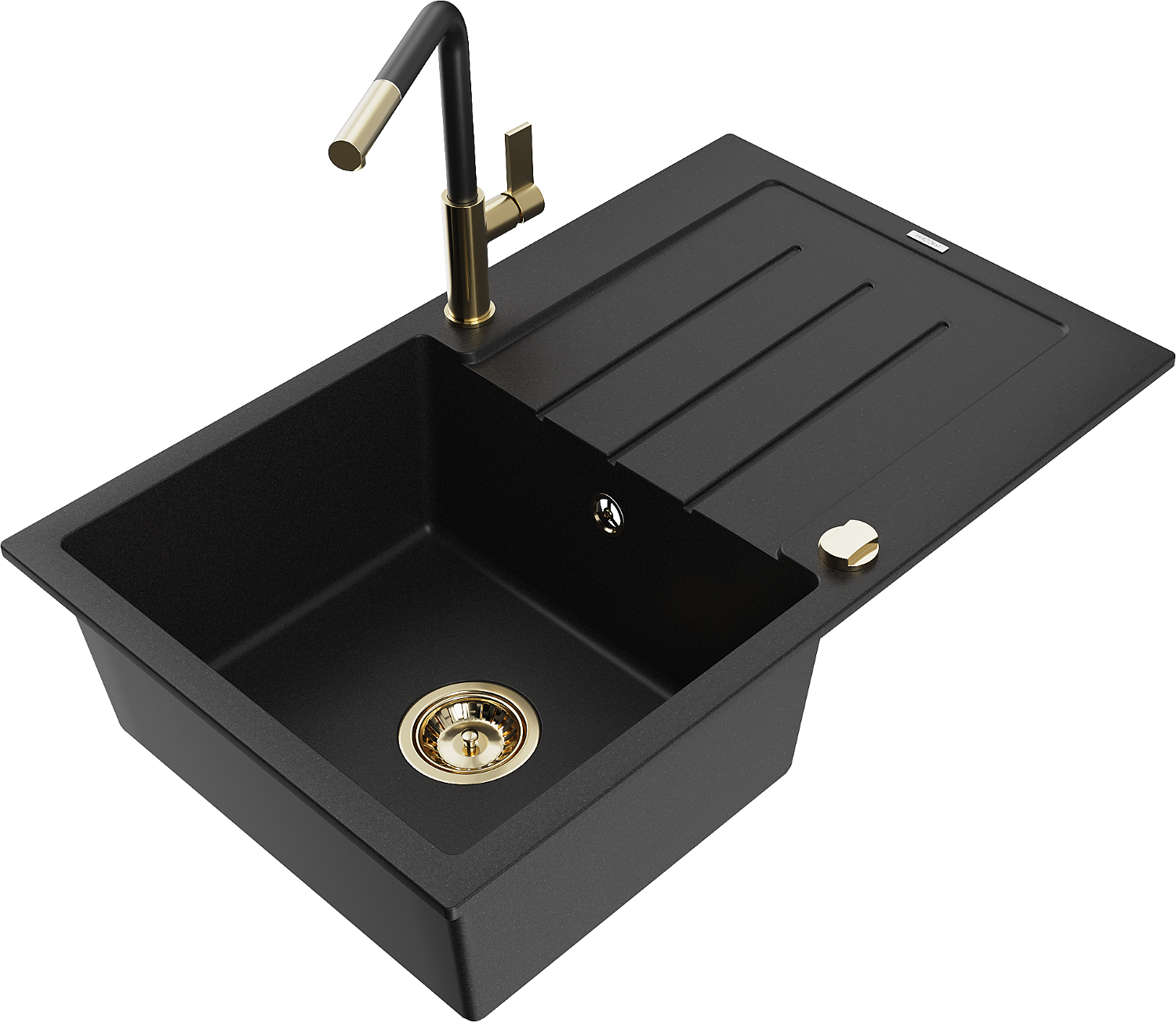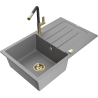 Mexen Bruno lavello in granito a 1 vasca con gocciolatoio e rubinetto da cucina Flora, nero - 6513-77-670401-57-G