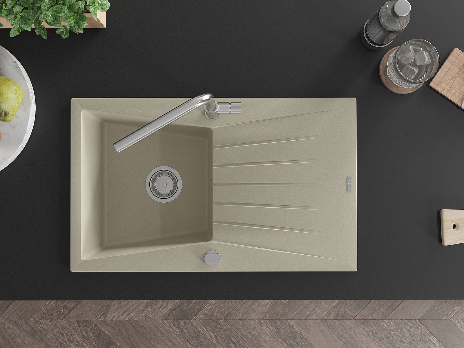 Mexen Cesar lavello da cucina in granito a 1 vasca con sgocciolatoio e rubinetto Flora, beige - 6514-69-670401-00