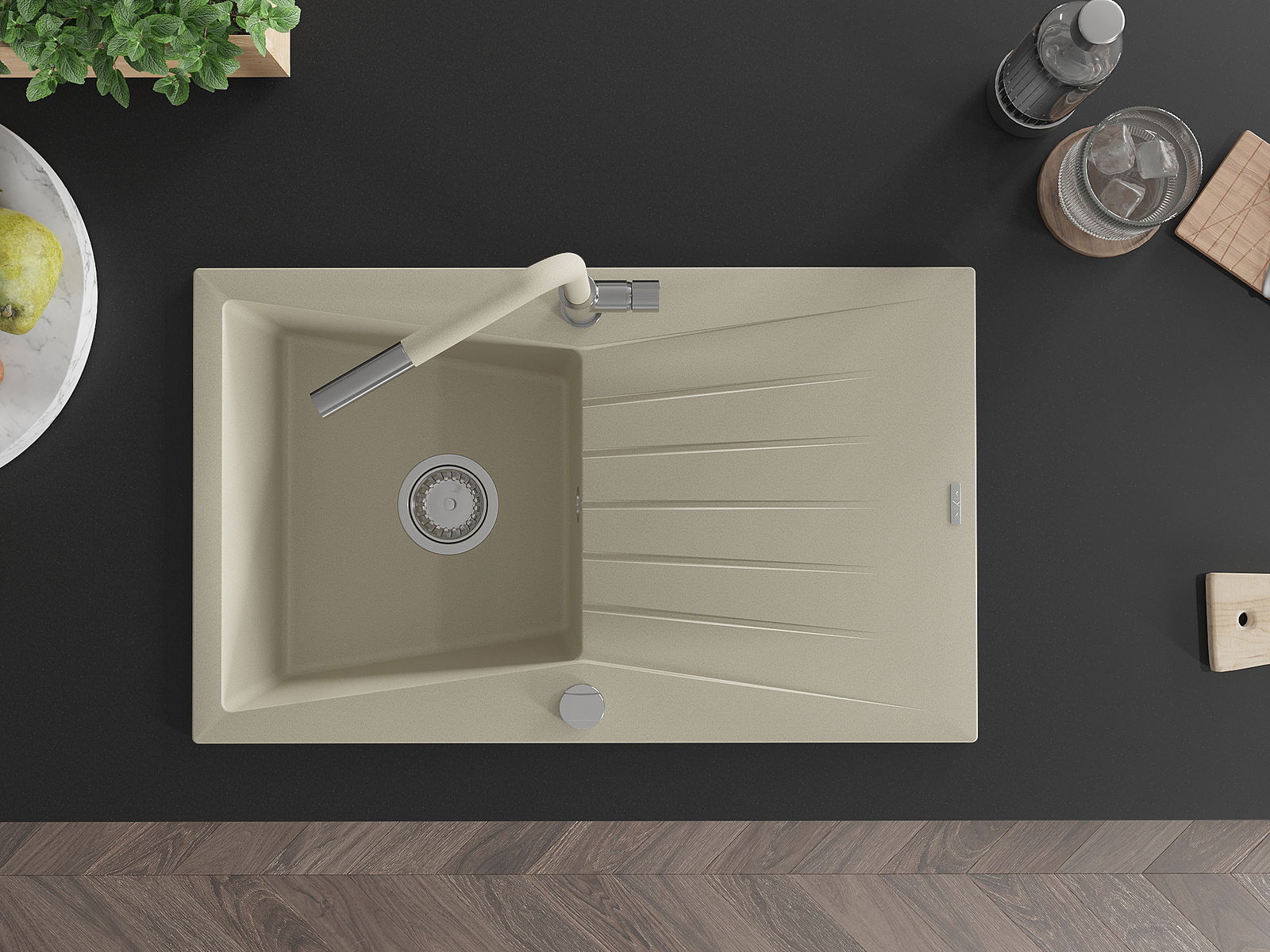 Mexen Cesar lavello da cucina in granito a 1 vasca con gocciolatoio e rubinetto cucina Flora, beige - 6514-69-670401-09