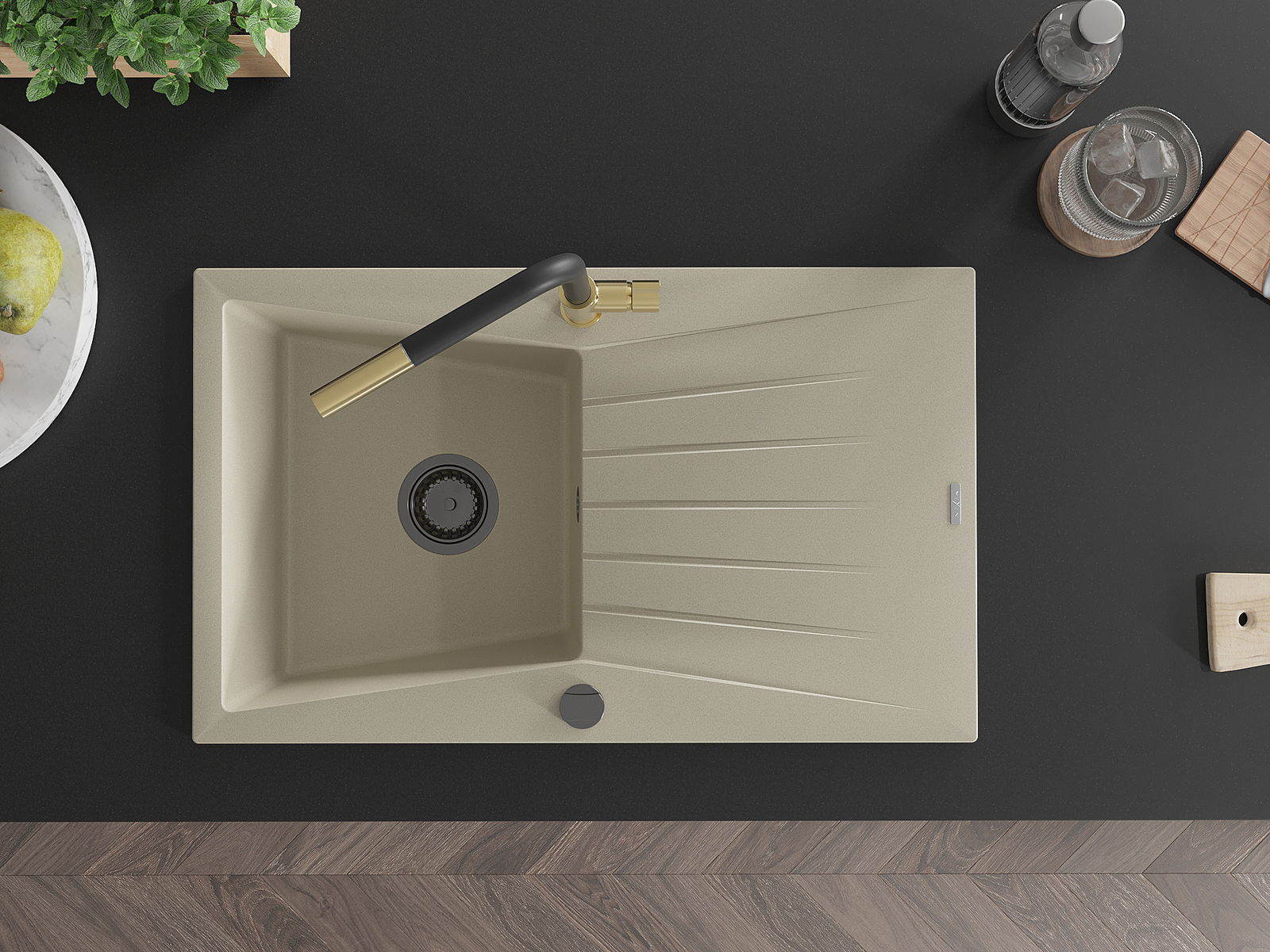 Il lavello è realizzato in granito di alta qualità. Rappresenta un complemento elegante e, soprattutto, pratico per ogni cucina, indipendentemente dal suo stile. L'alta qualità e la durata del granito garantiscono un utilizzo che dura per molti anni.
