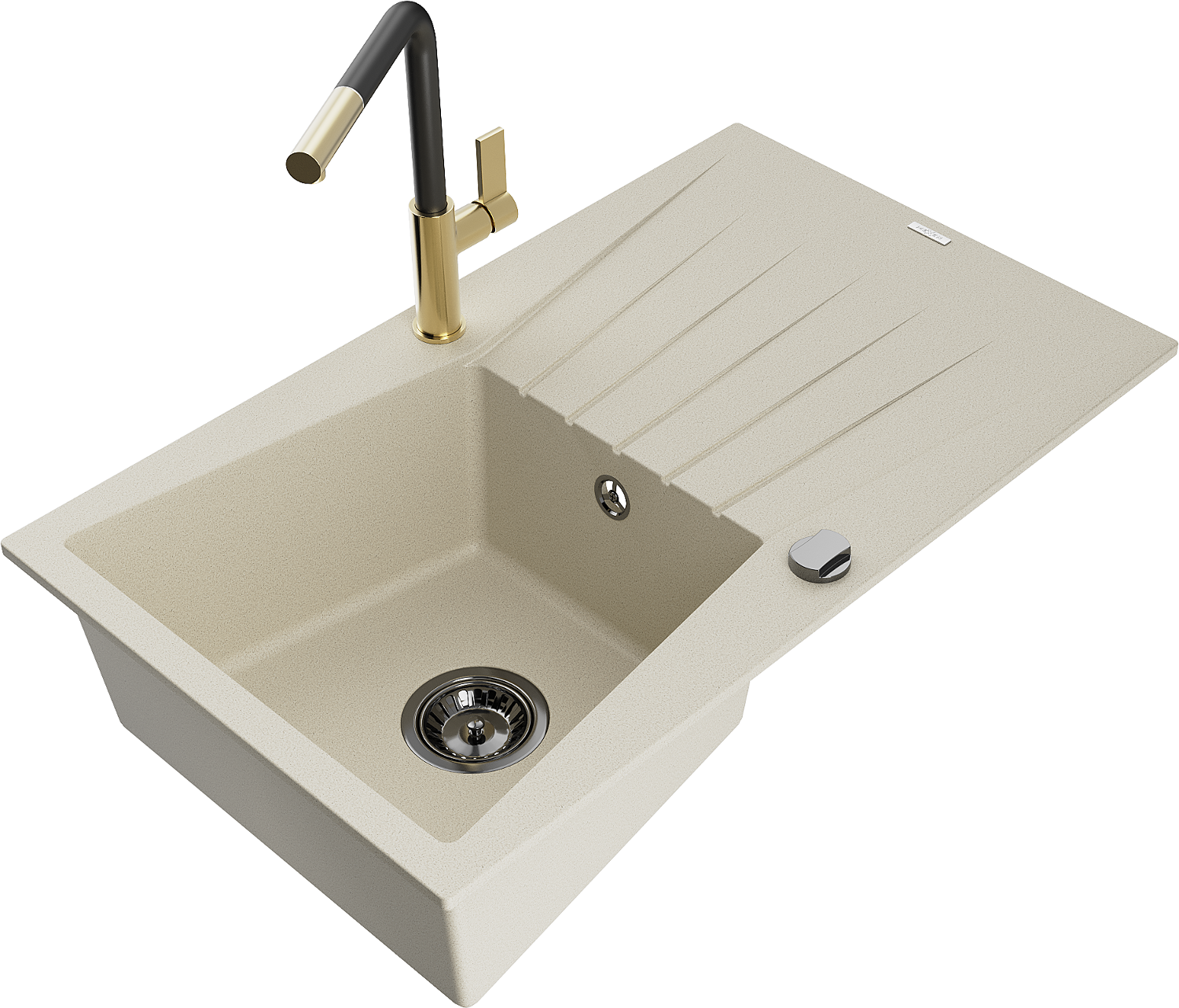 Mexen Cesar lavello in granito a 1 vasca con scolapiatti e rubinetto da cucina Flora, beige - 6514-69-670401-57-B