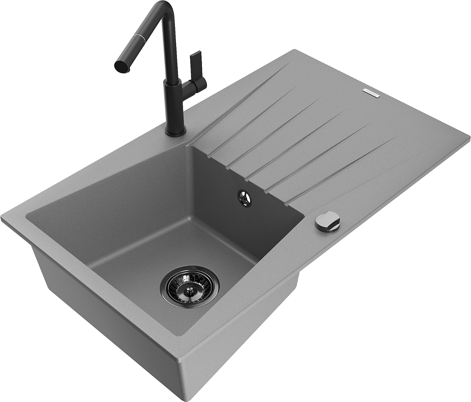 Mexen Cesar lavello in granito a 1 vasca con sgocciolatoio e rubinetto da cucina Flora, grigio - 6514-71-670401-70-B