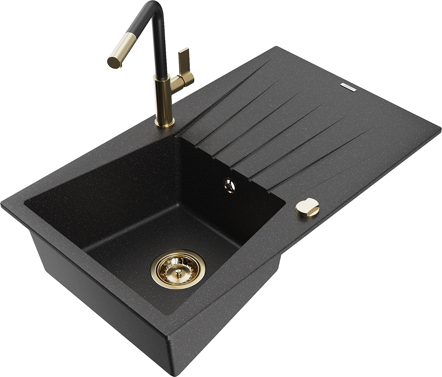 Mexen Cesar lavello in granito a 1 vasca con sgocciolatoio e miscelatore Flora, nero/argento metallizzato - 6514-73-670401-57-G
