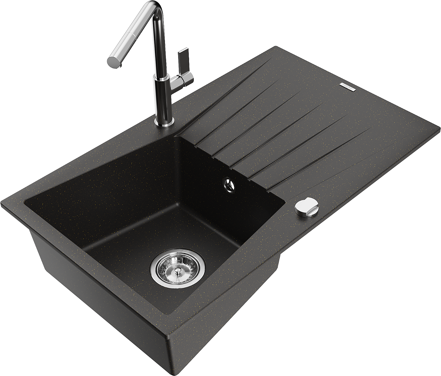 Mexen Cesar lavello in granito a 1 vasca con sgocciolatoio e rubinetto da cucina Flora, nero/oro metallico - 6514-75-670401-00