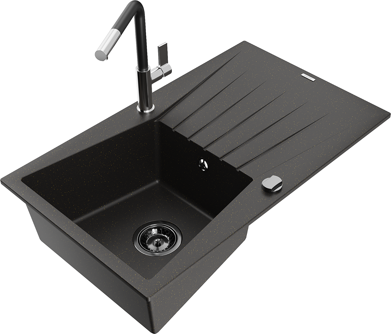 Mexen Cesar lavello in granito a 1 vasca con scolapiatti e rubinetto da cucina Flora, nero/oro metallizzato