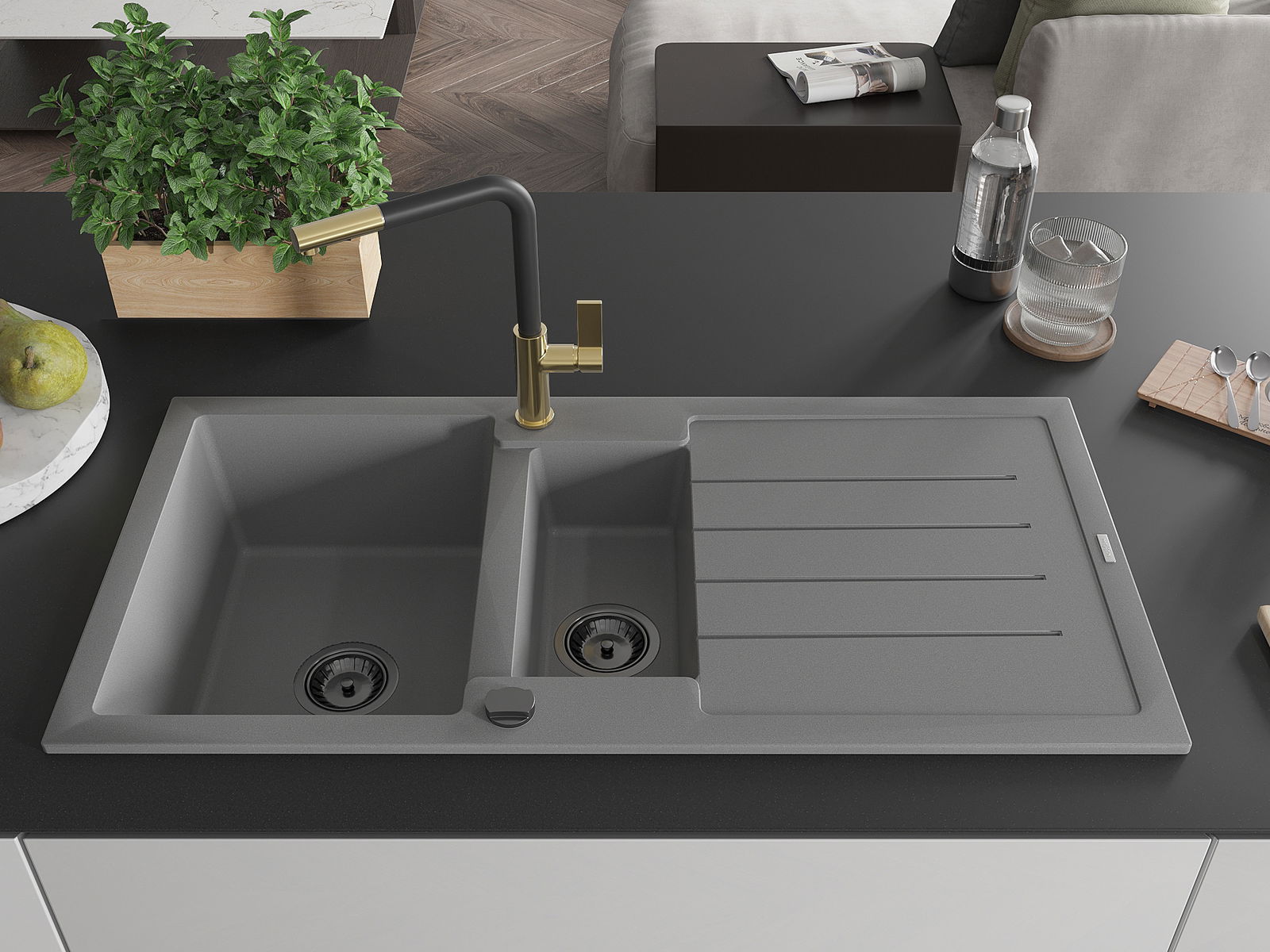 La scelta di un lavello con sgocciolatoio è una soluzione pratica che consente di riporre piatti, verdure e frutta lavati. Lo sgocciolatoio facilita la cucina quotidiana e aiuta a mantenere l'ordine in cucina.