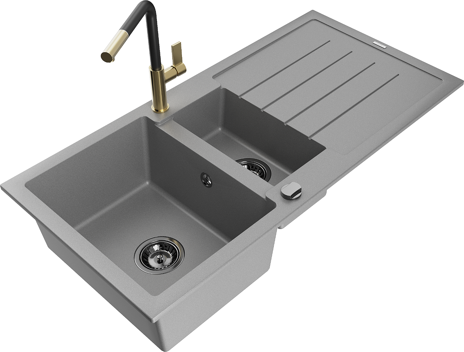 Mexen Andres lavello in granito 1,5 vasche con sgocciolatoio e rubinetto da cucina Flora, grigio - 6515-71-670401-57-B