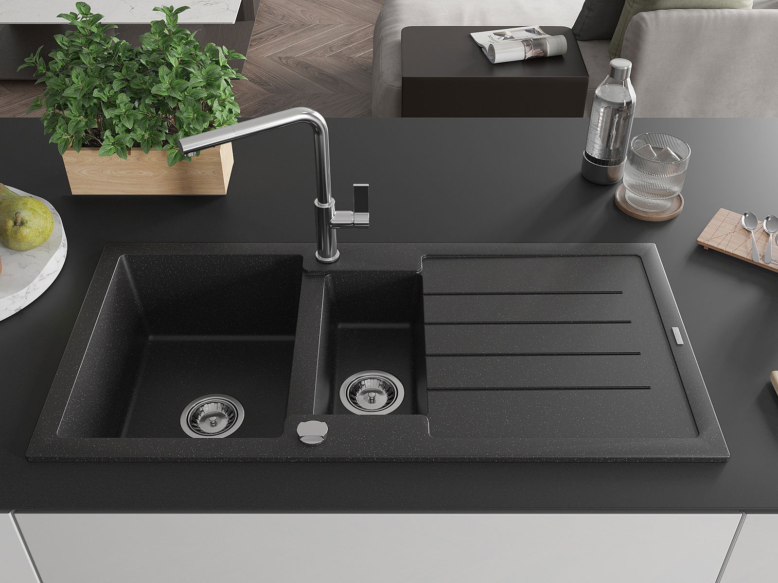 La scelta di un lavello con sgocciolatoio è una soluzione pratica che consente di riporre piatti, verdure e frutta lavati. Lo sgocciolatoio facilita la cucina quotidiana e aiuta a mantenere l'ordine in cucina.