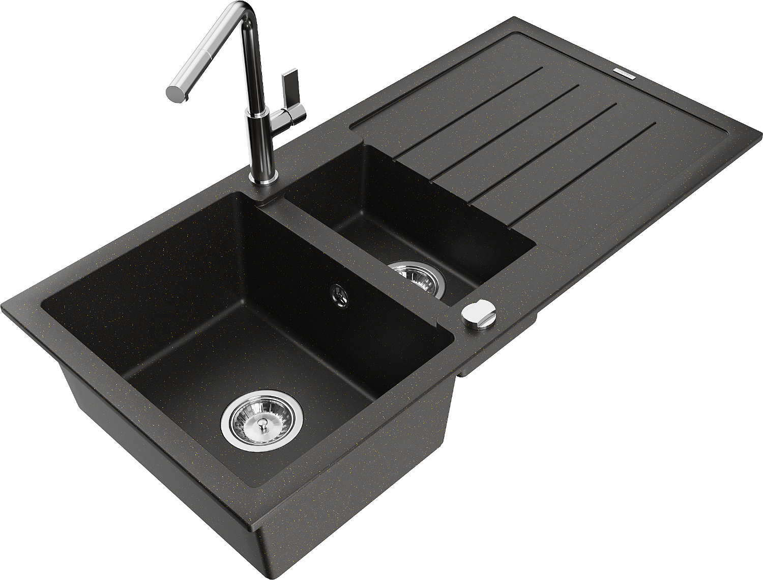 Mexen Andres lavello in granito a 1,5 vasche con scolapiatti e rubinetto da cucina Flora, nero/oro metallizzato