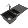 Mexen Andres lavello in granito 1,5 vasca con sgocciolatoio e rubinetto da cucina Flora, nero maculato - 6515-76-670401-00
