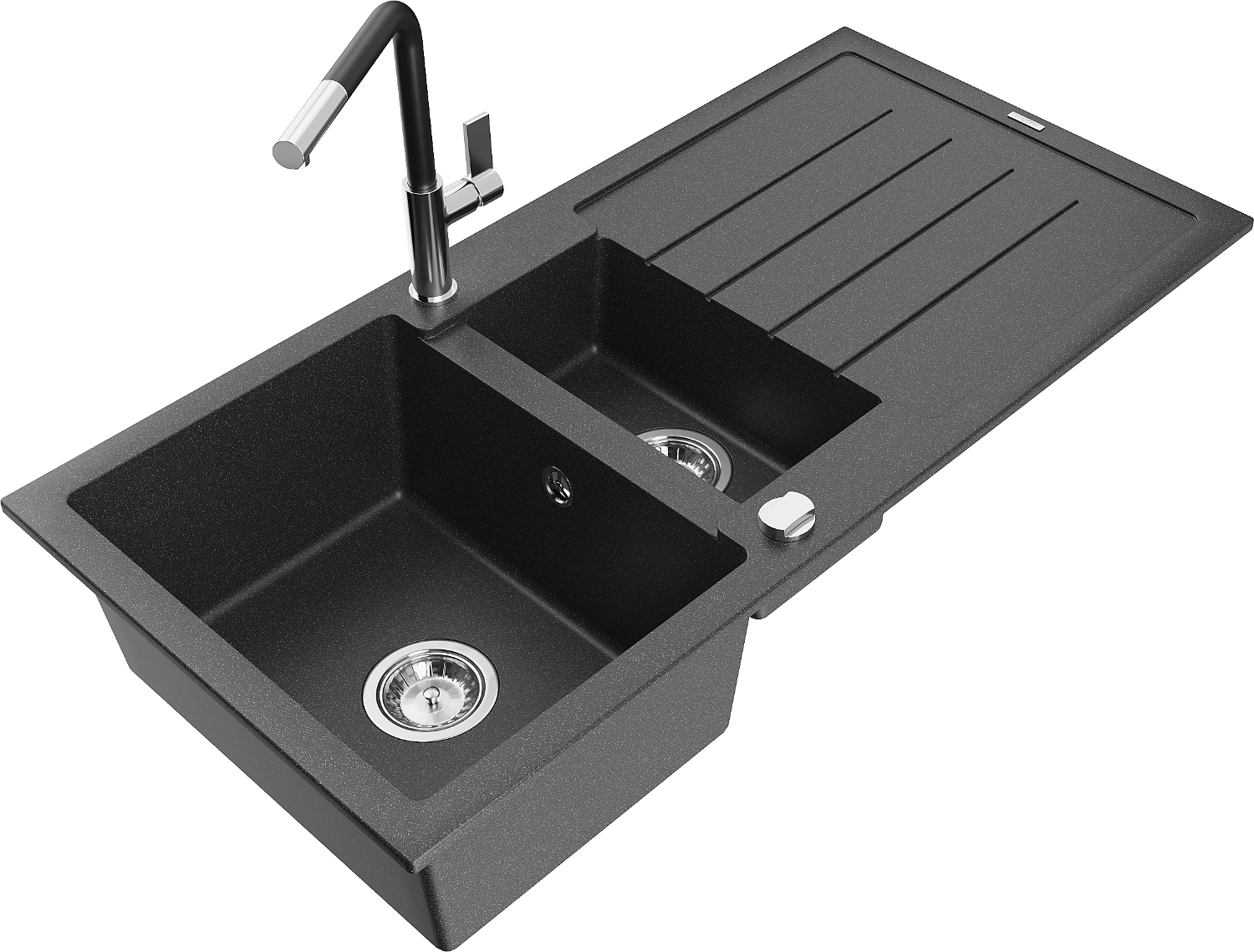 Mexen Andres lavello in granito a 1,5 vasche con scolapiatti e rubinetto da cucina Flora, nero punteggiato - 6515-76-670401-07