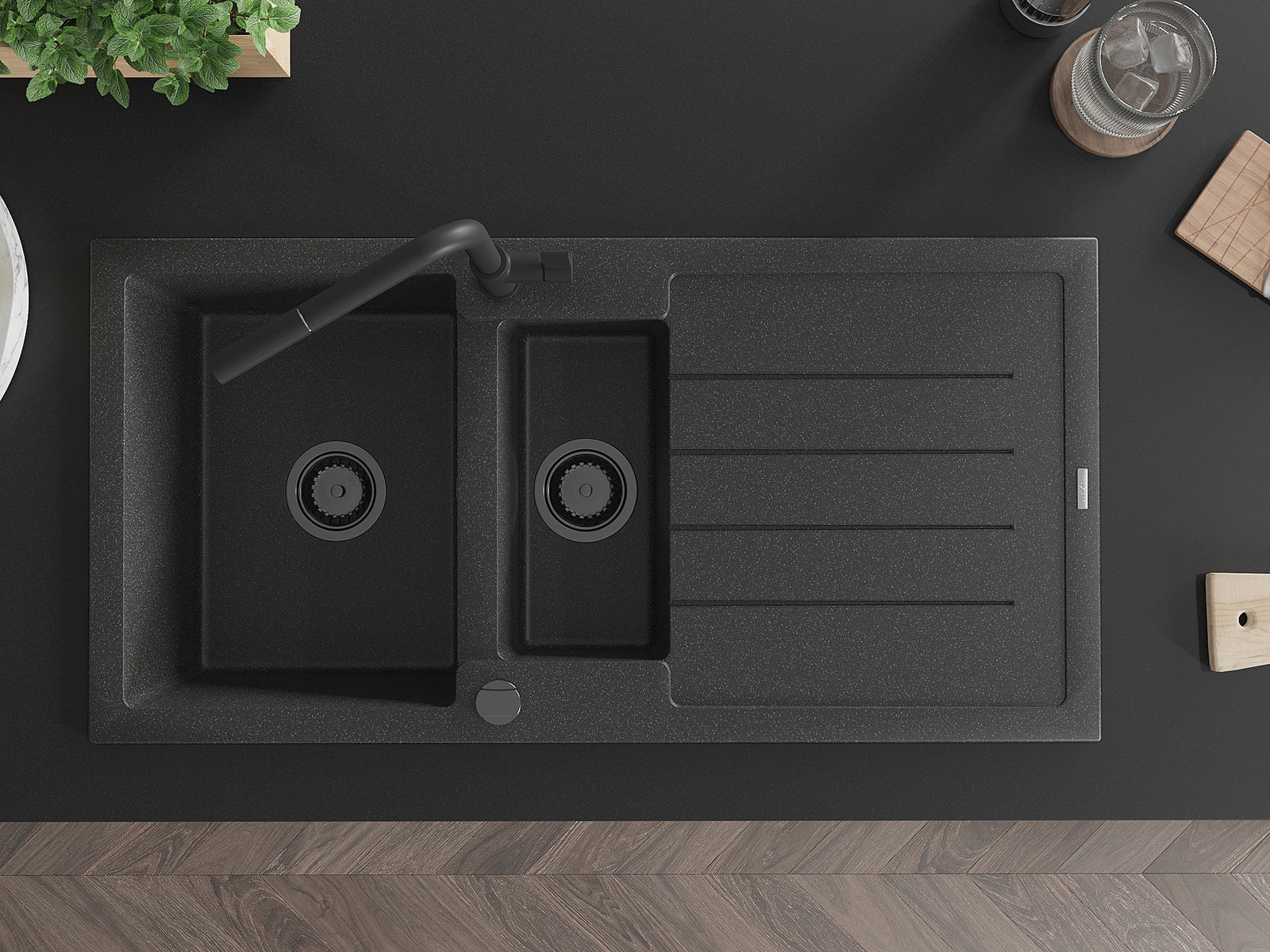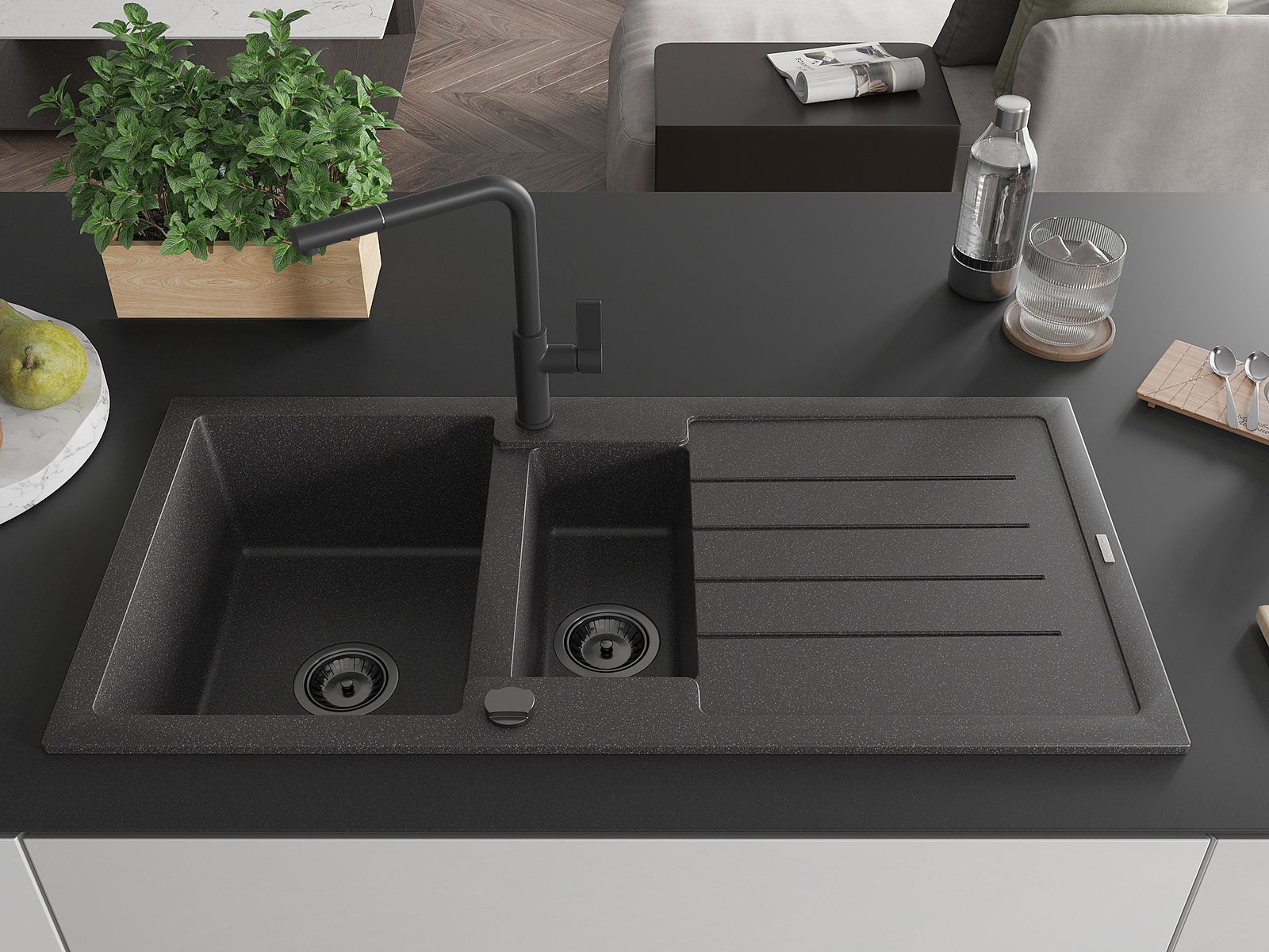 La scelta di un lavello con sgocciolatoio è una soluzione pratica che consente di riporre piatti, verdure e frutta lavati. Lo sgocciolatoio facilita la cucina quotidiana e aiuta a mantenere l'ordine in cucina.