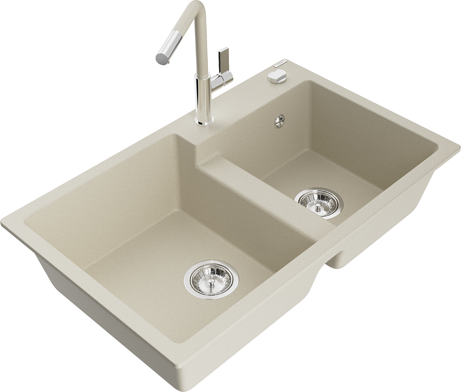 Mexen Tomas lavello da cucina in granito a 2 vasche con miscelatore Flora, beige - 6516-69-670401-09