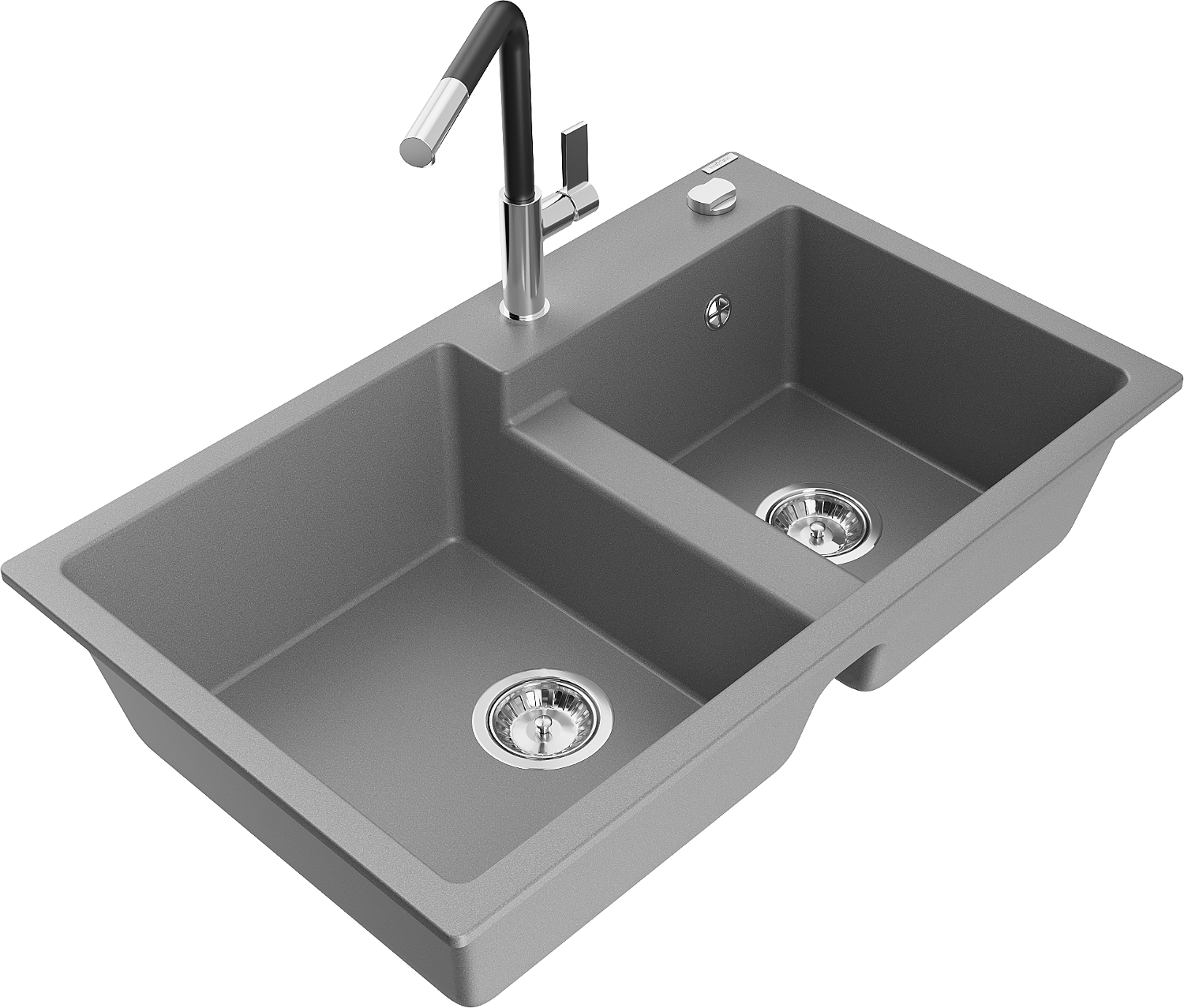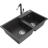Mexen Tomas lavello da cucina in granito a 2 vasche con rubinetto Flora, grigio - 6516-71-670401-07