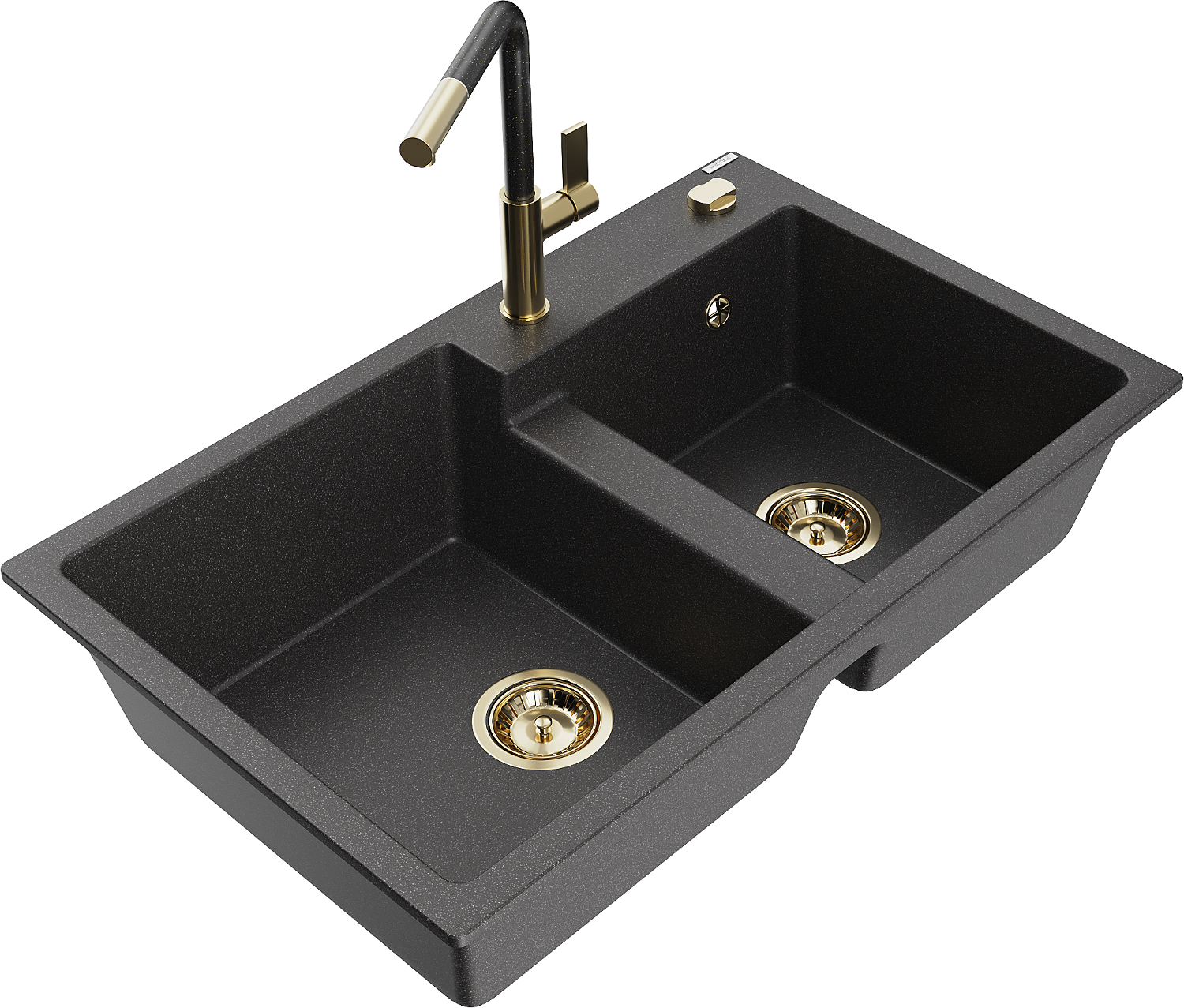 Mexen Tomas lavello da cucina in granito a 2 vasche con rubinetto da cucina Flora, nero punteggiato - 6516-76-670401-75-G