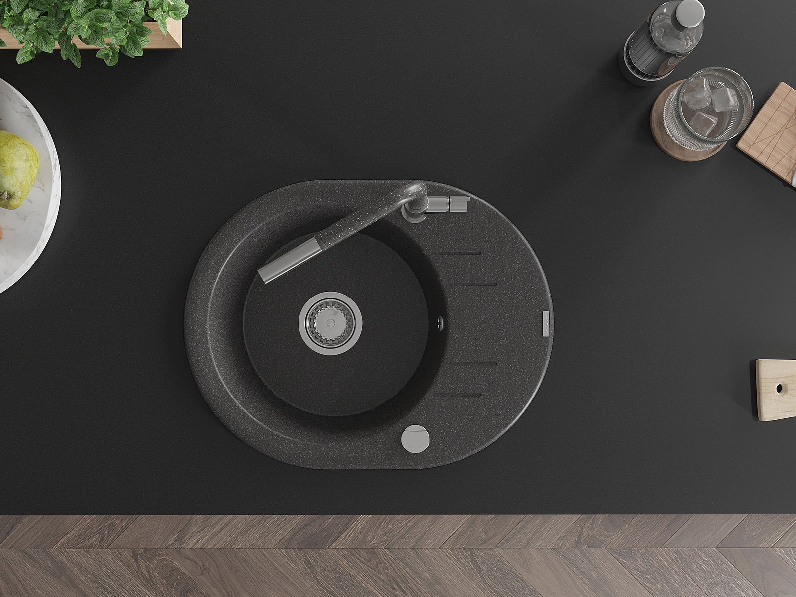 Il lavello è realizzato in granito di alta qualità. Rappresenta un complemento elegante e, soprattutto, pratico per ogni cucina, indipendentemente dal suo stile. L'alta qualità e la durata del granito garantiscono un utilizzo che dura per molti anni.
