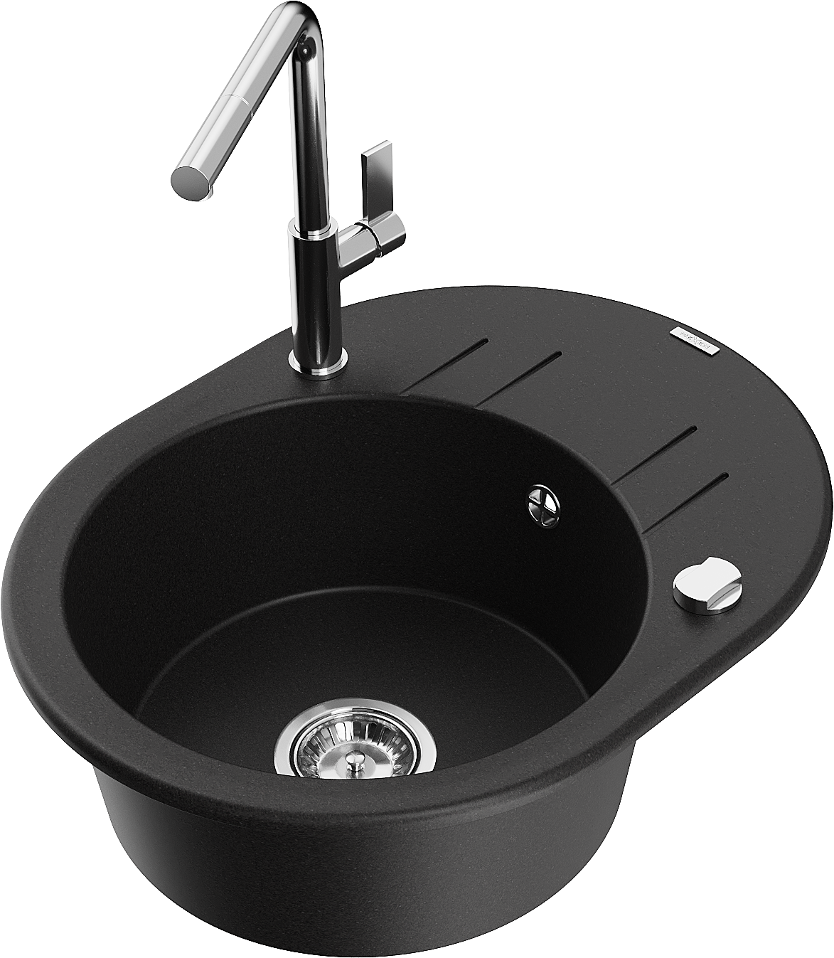 Mexen Kevin lavello in granito a 1 vasca con sgocciolatoio e rubinetto da cucina Flora, nero - 6517-77-670401-00