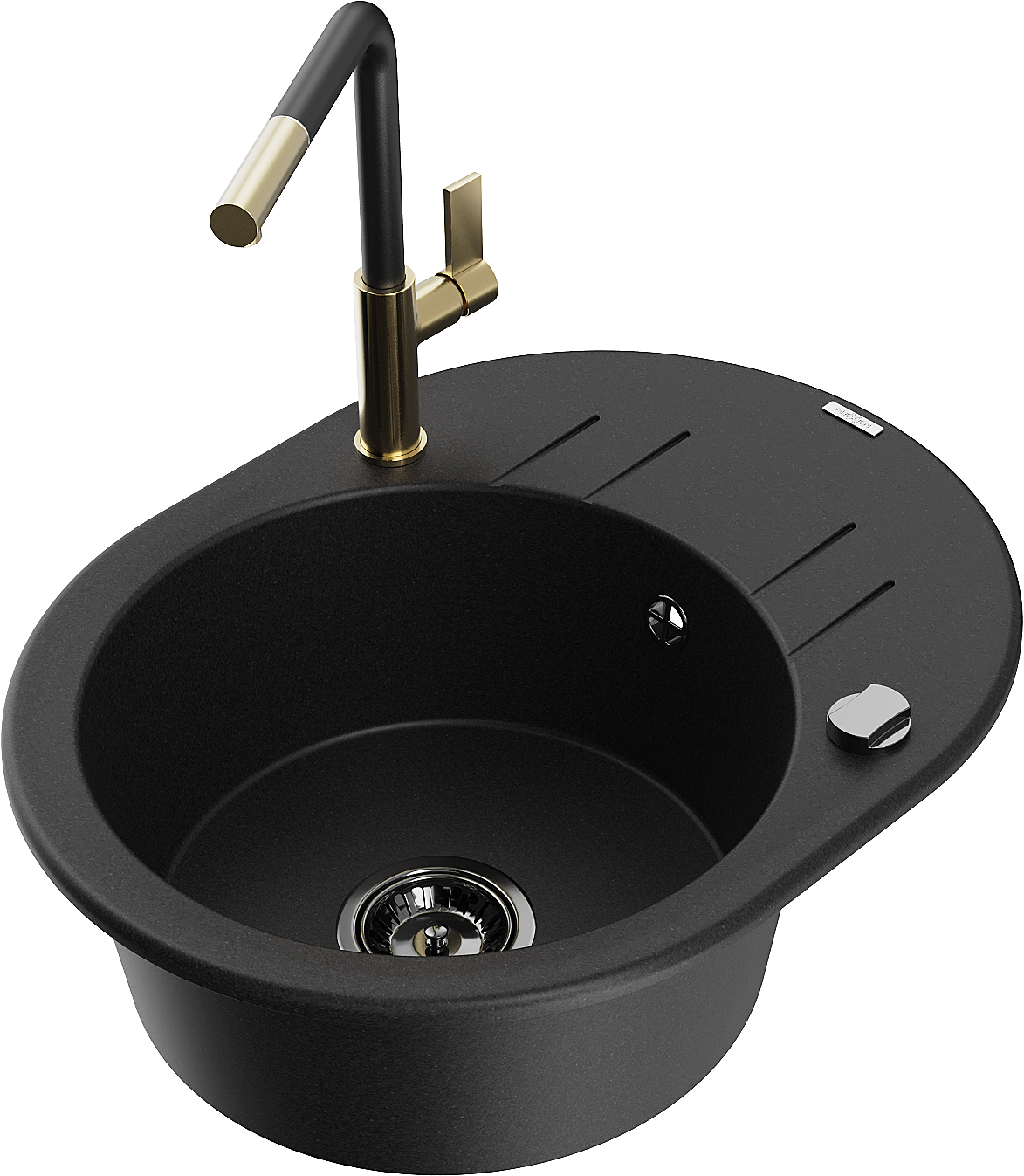 Mexen Kevin lavello in granito a 1 vasca con scolapiatti e rubinetto da cucina Flora, nero - 6517-77-670401-57-B
