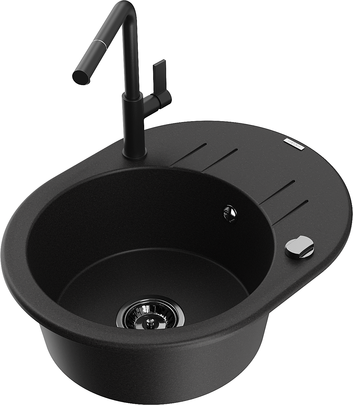 Mexen Kevin lavello in granito 1-vasca con scolapiatti e rubinetto da cucina Flora, nero - 6517-77-670401-70-B