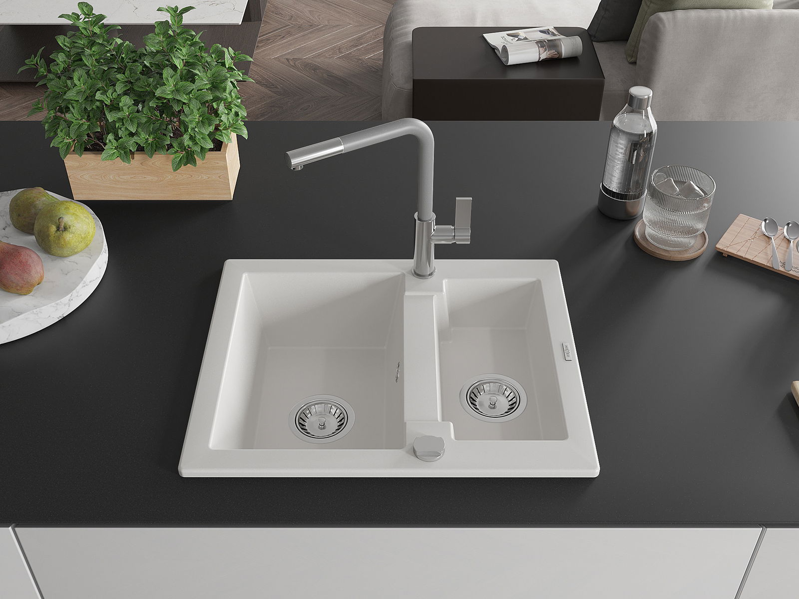 Il lavello è realizzato in granito di alta qualità. Rappresenta un complemento elegante e, soprattutto, pratico per ogni cucina, indipendentemente dal suo stile. L'alta qualità e la durata del granito garantiscono un utilizzo che dura per molti anni.
