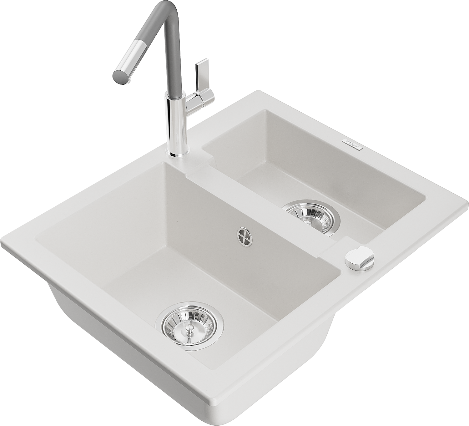 Mexen Carlos lavello da cucina in granito 1,5 vasche con rubinetto Flora, bianco - 6518-20-670401-06
