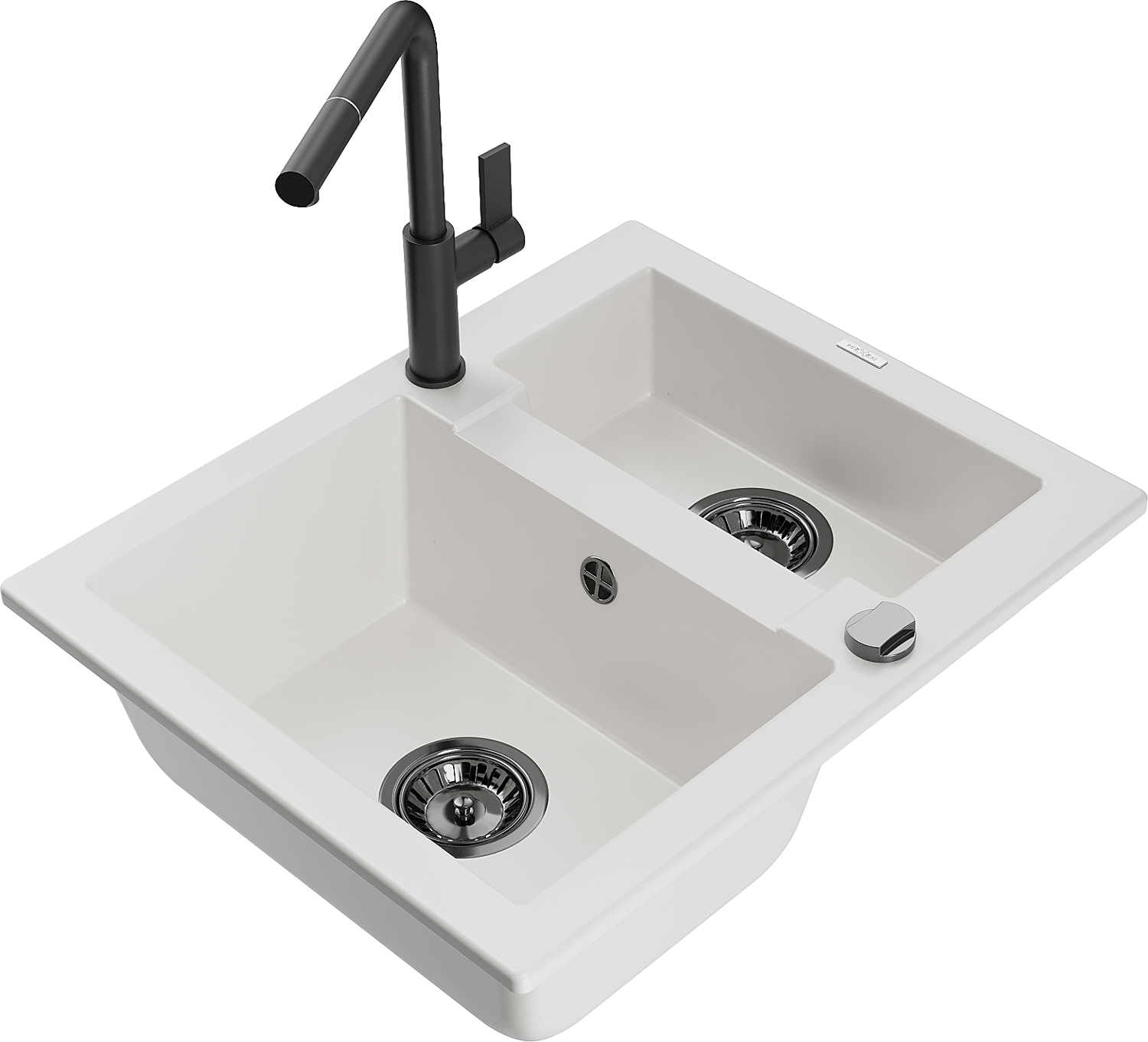 Mexen Carlos lavello in granito a 1,5 vasca con miscelatore cucina Flora, bianco - 6518-20-670401-70-B