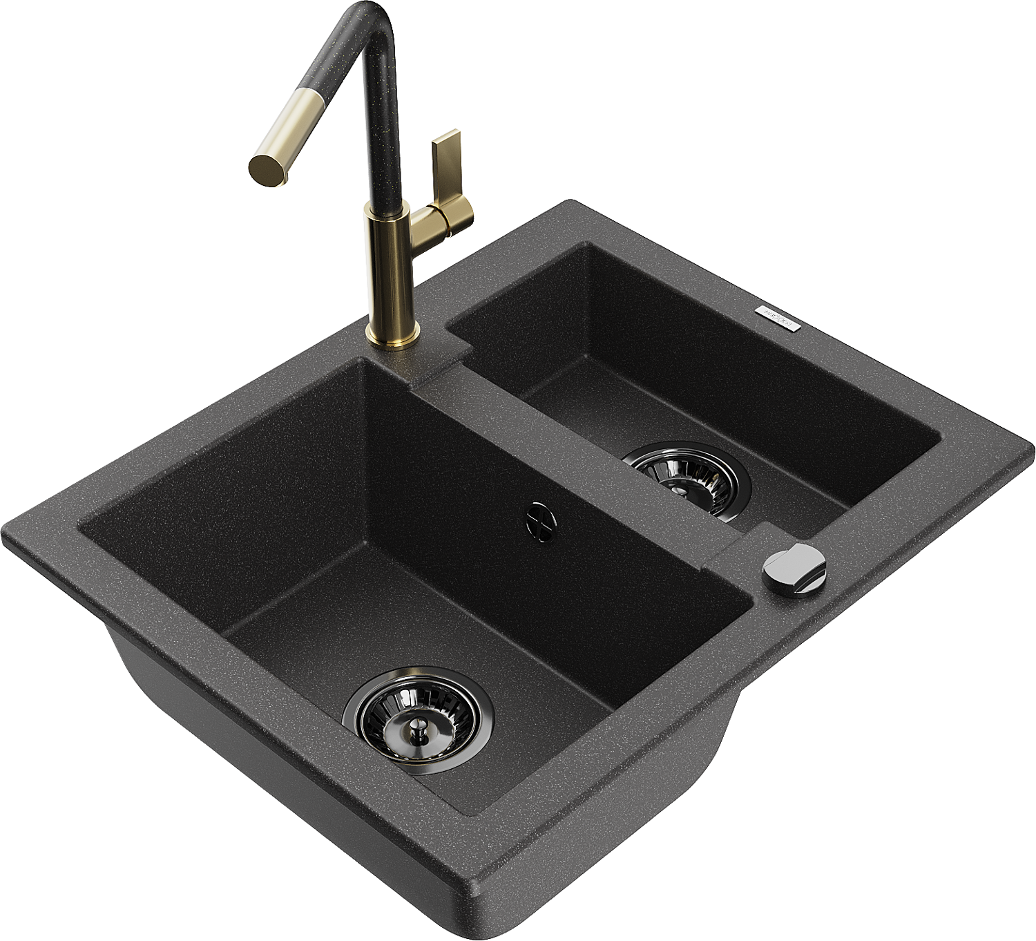 Mexen Carlos lavello in granito 1,5 vasche con miscelatore da cucina Flora, nero punteggiato - 6518-76-670401-75-B
