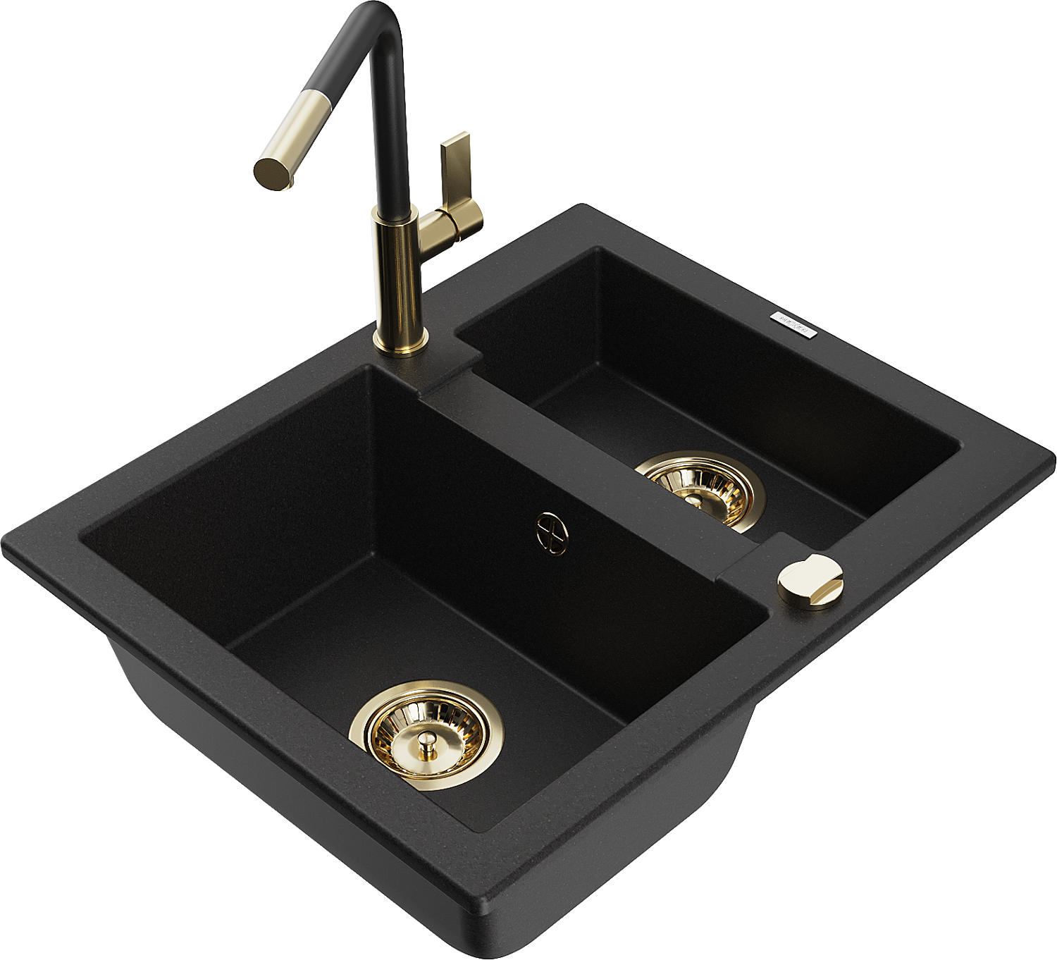 Mexen Carlos lavello in granito a 1,5 vasca con miscelatore da cucina Flora, nero - 6518-77-670401-57-G