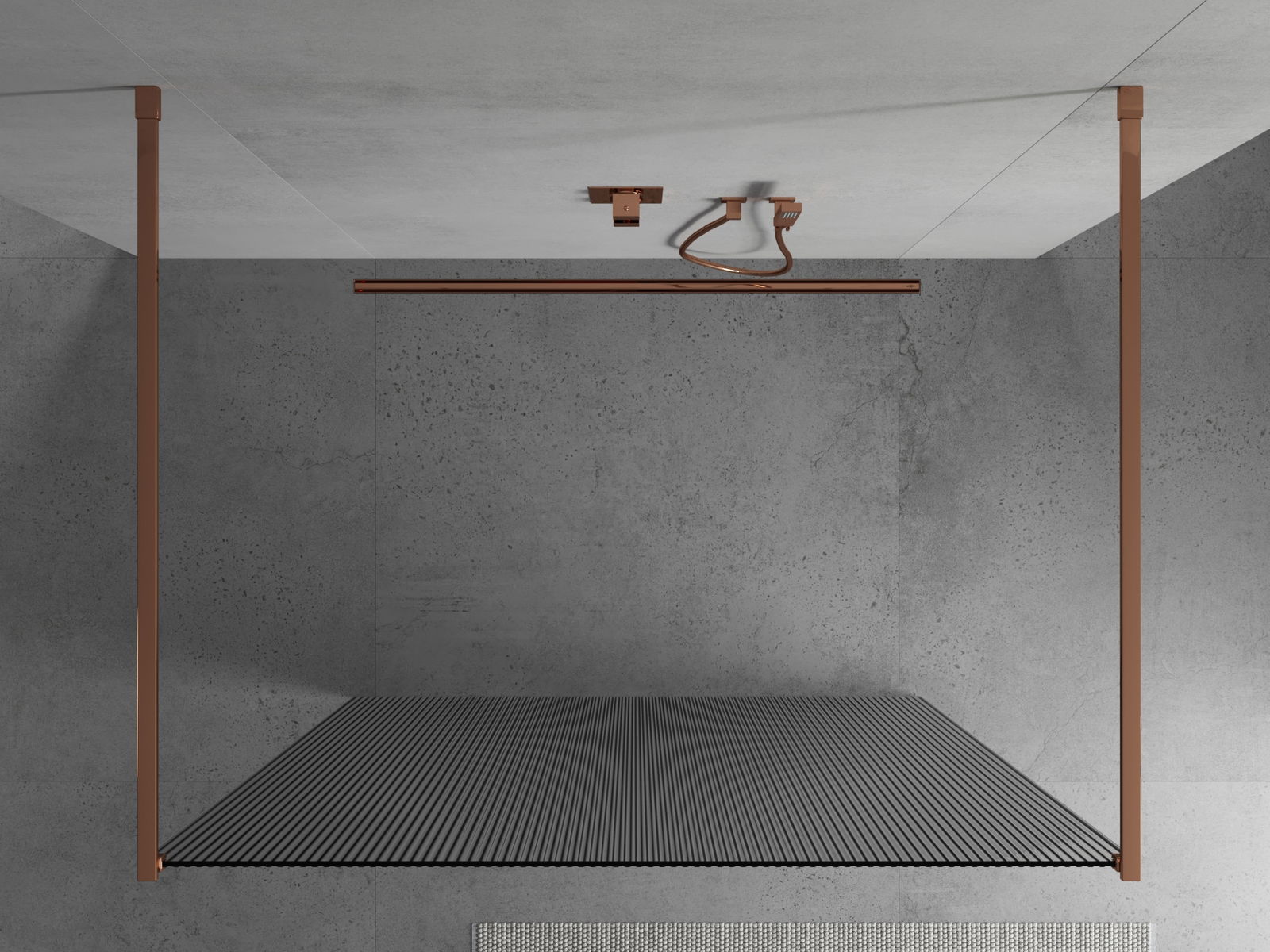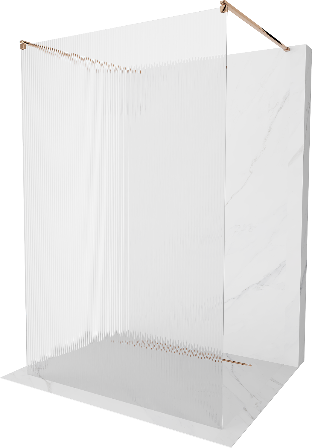 Mexen Kioto parete doccia autoportante 130 x 200 cm, righe 8 mm, oro rosa - 800-130-002-60-09