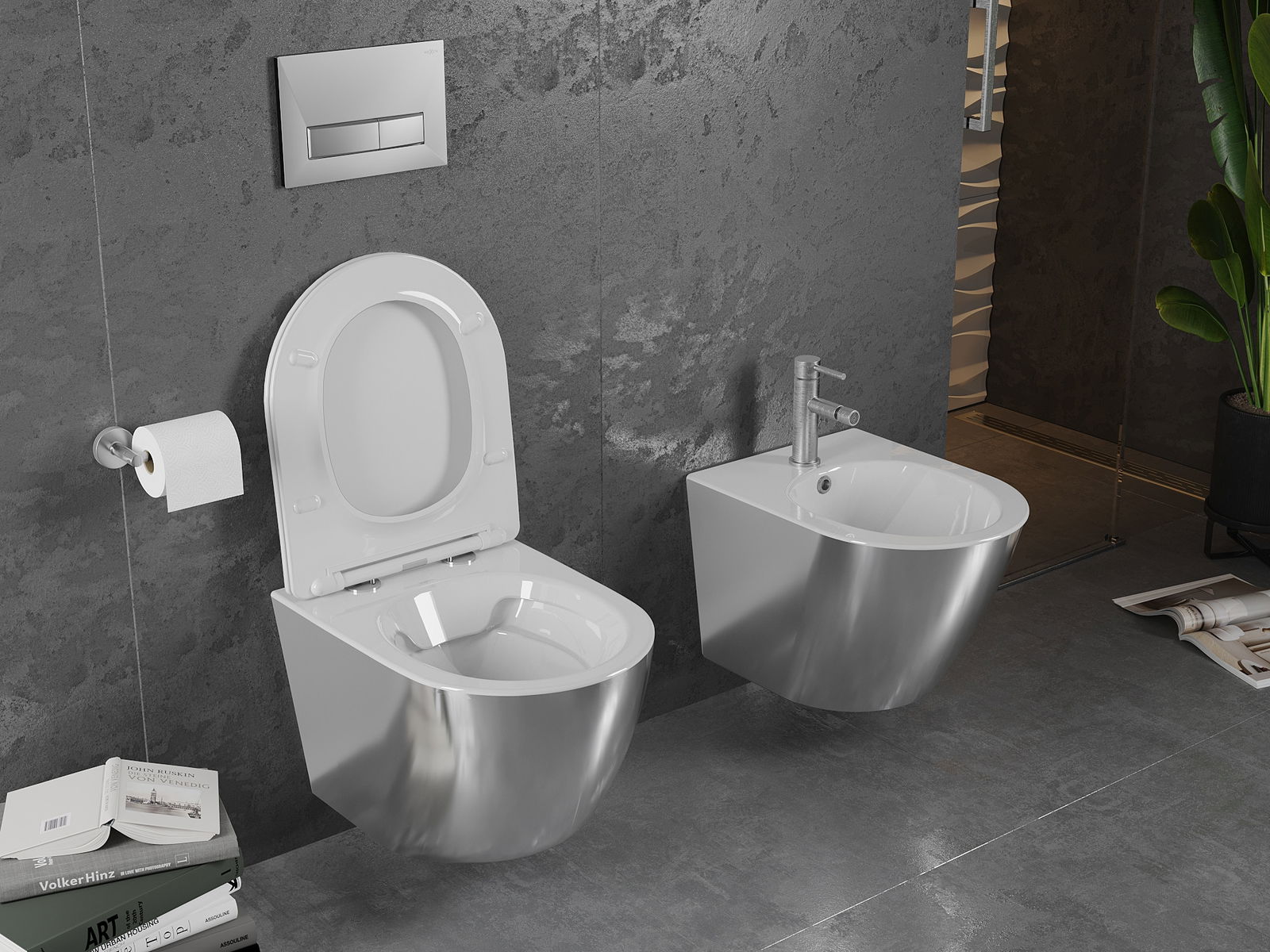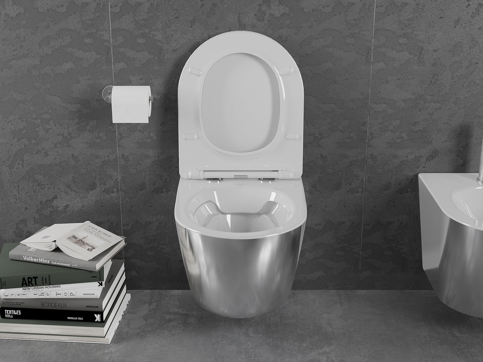 Tavola sottile con una forma eccezionalmente ergonomica e un aspetto estremamente snello. Il design si adatta perfettamente all'interno moderno del bagno, dando un'impressione di leggerezza. Ottima scelta per allestimenti minimalisti.