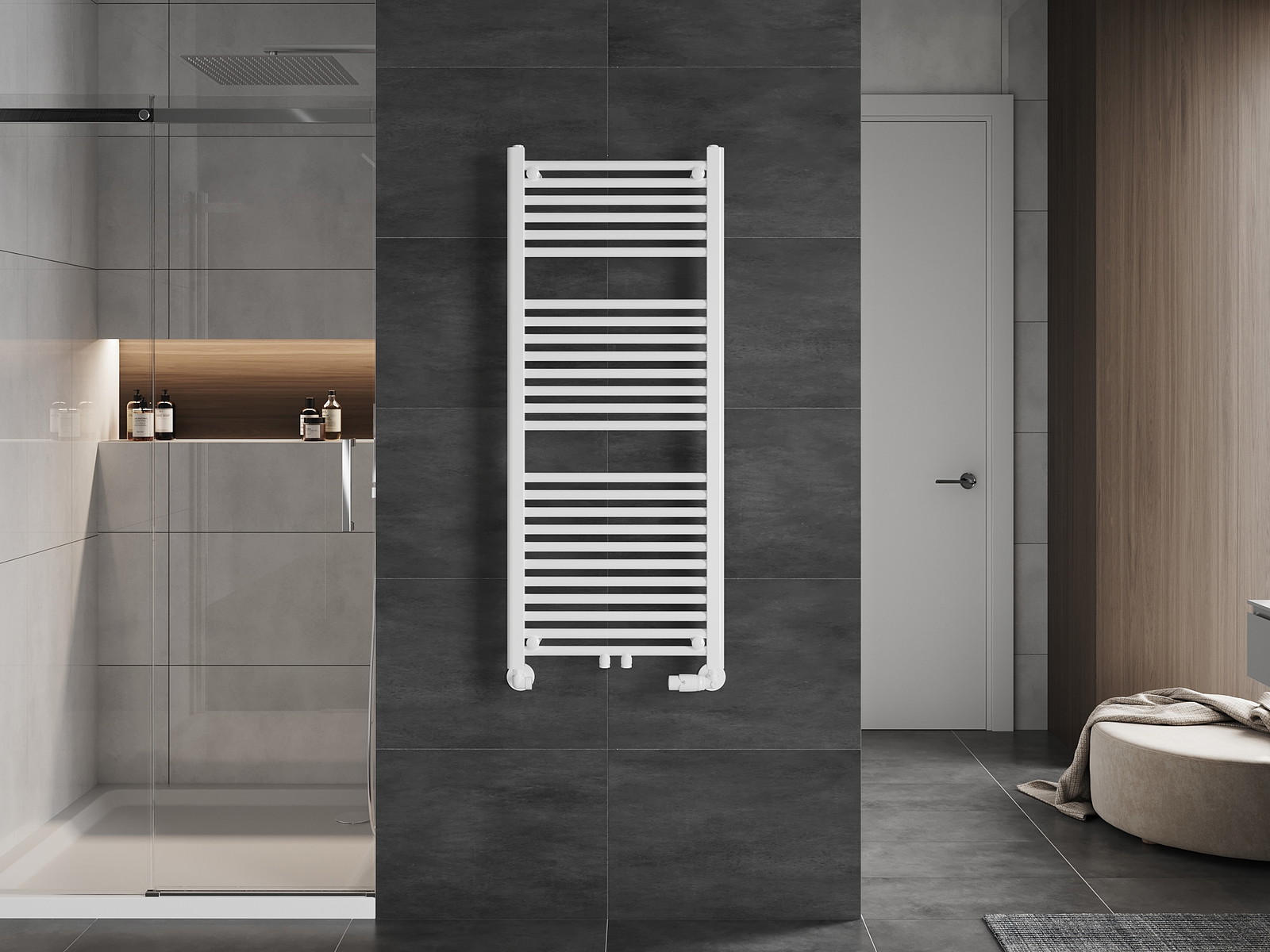 Mexen Mars è un radiatore da bagno delle dimensioni di 1200 x 500 mm con una potenza di 528 W, perfetto per garantire comfort termico in bagno. Si contraddistingue per un elegante colore bianco (RAL 9016) che si adatta a qualsiasi interno. Realizzato in acciaio resistente con classe di resistenza al fuoco A1, garantisce sicurezza e durata. Le distanze di collegamento ottimali facilitano l'installazione: 45 cm inferiore o 5 cm centrale, e la possibilità di montare una resistenza contribuisce a una maggiore versatilità. Il set include staffe, set di montaggio, tappi e valvola di sfiato per un'installazione rapida e senza problemi.