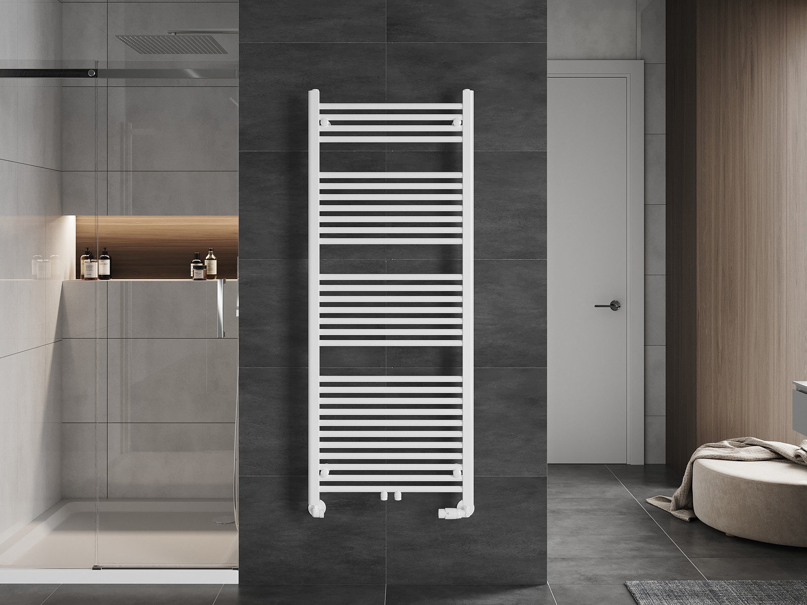 Mexen Mars si distingue come radiatore da bagno con dimensioni impressionanti di 1500 x 600 mm e potenza termica di 729 W. Il suo colore bianco RAL 9016 si abbina perfettamente con gli interni moderni. Grazie alla solida costruzione in acciaio e alla vernice di alta qualità resistente alla corrosione, offre affidabilità e durata. Compatibile con le resistenze elettriche, presenta opzioni di distanza di connessione variegate (55 cm inferiore o 5 cm centrale) e pressione di esercizio massima di 0,6 MPa, rendendolo una scelta ideale per ogni bagno.