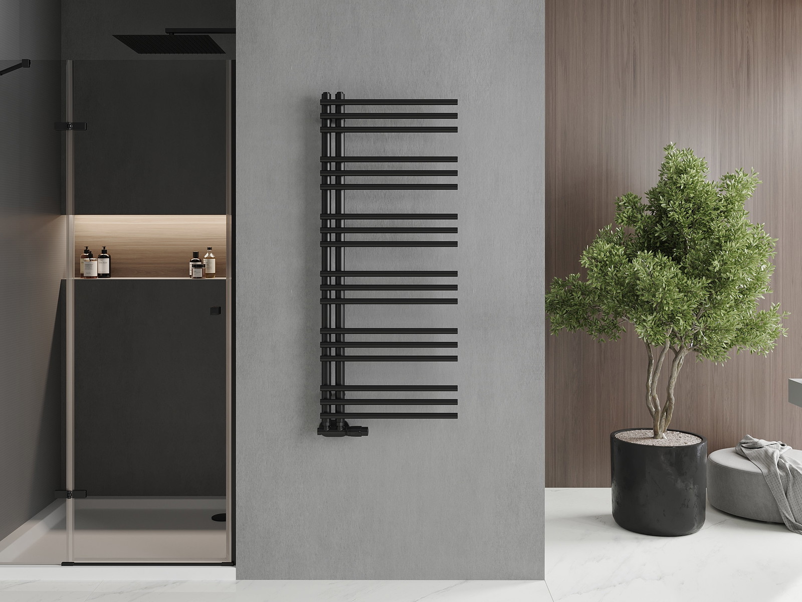 Mexen Neptun è un elegante radiatore da bagno dal design moderno, ideale per ogni interno. Le sue dimensioni sono 1200 x 500 mm, e la profondità è di 66 mm, permettendo un risparmio di spazio. L'elevata potenza termica di 456 W e la temperatura massima di esercizio fino a 95 °C assicurano un rapido riscaldamento dell'ambiente. La solida costruzione in acciaio di colore nero RAL 9005 e la resistenza alla corrosione garantiscono una lunga durata. La possibilità di installare una resistenza aumenta ulteriormente la funzionalità del dispositivo. Il radiatore è dotato di accessori per il montaggio e sfiato.